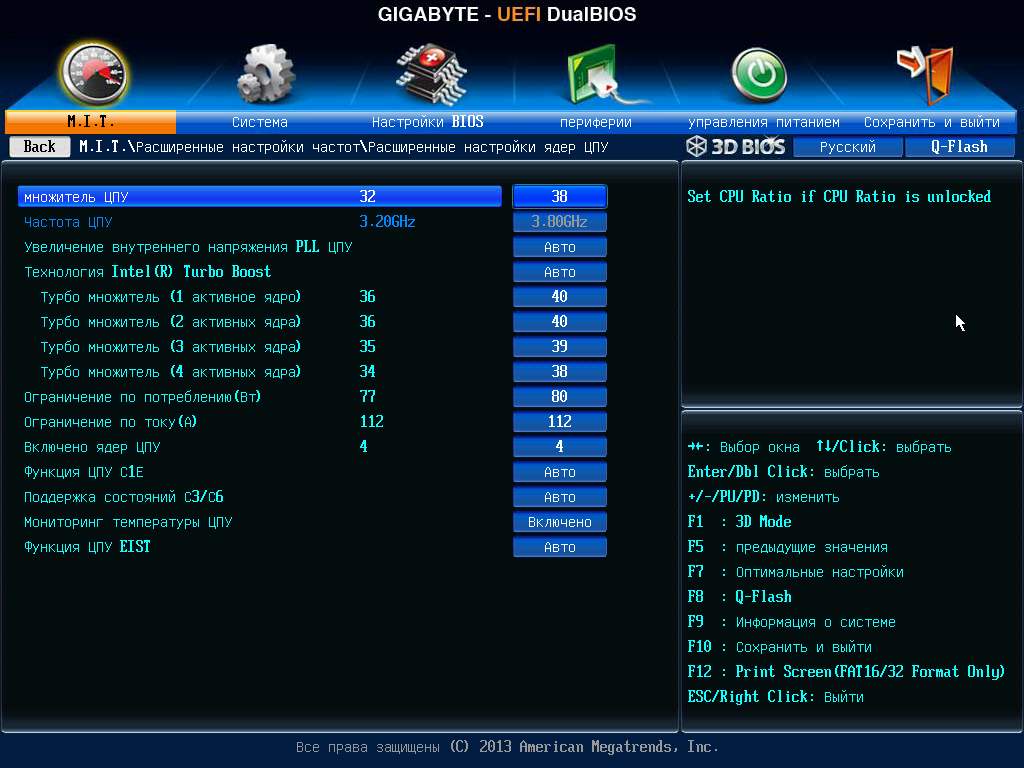 Подскажите. Поставил Xeon E5-2687W v2 написано что в Turbo Boost_е частота процессора 4 ггц. а у меня под нагрузкой максимум 3610.76 мГц в биосе Turbo Boost включён. Что не так делаю?