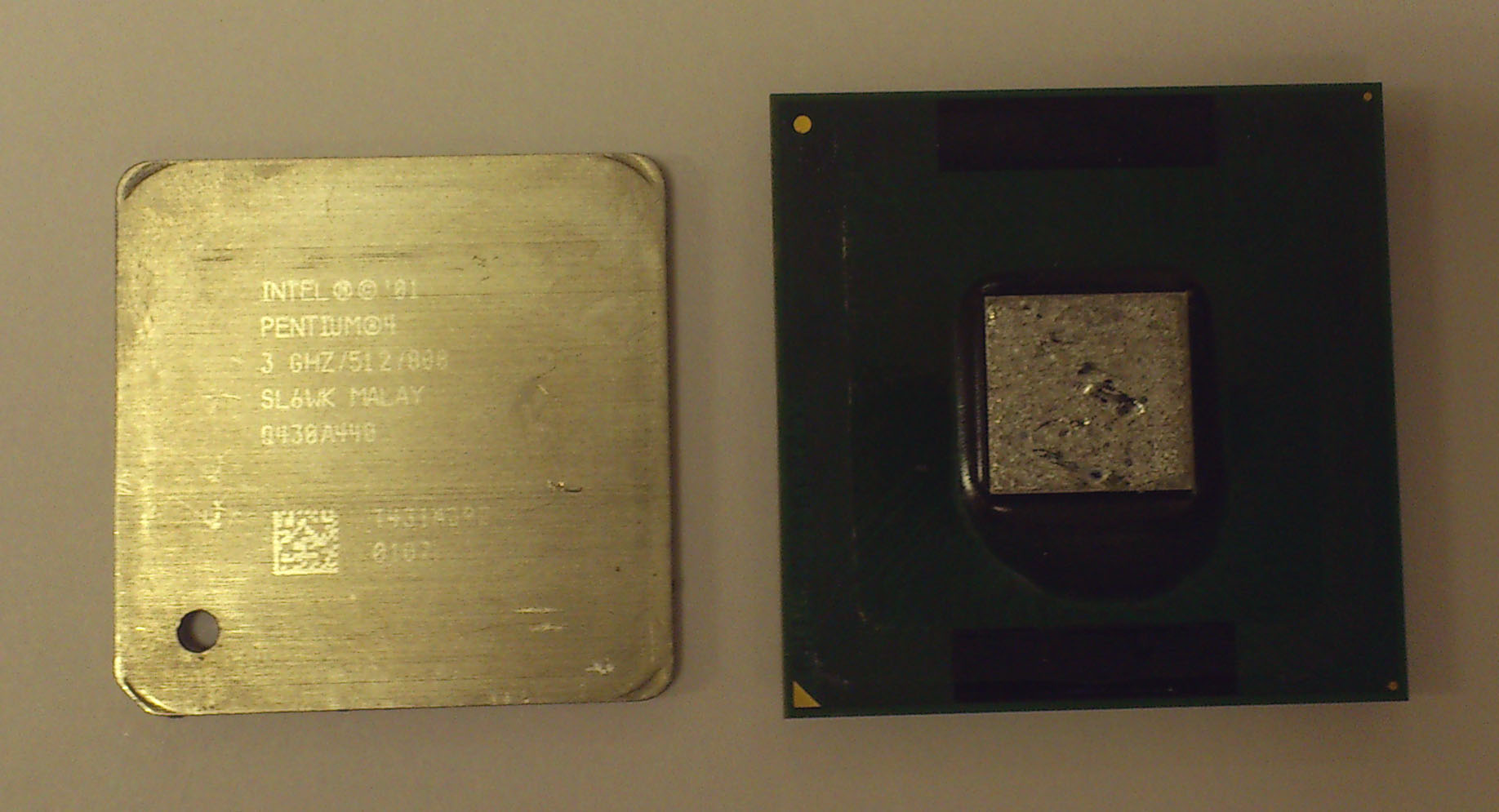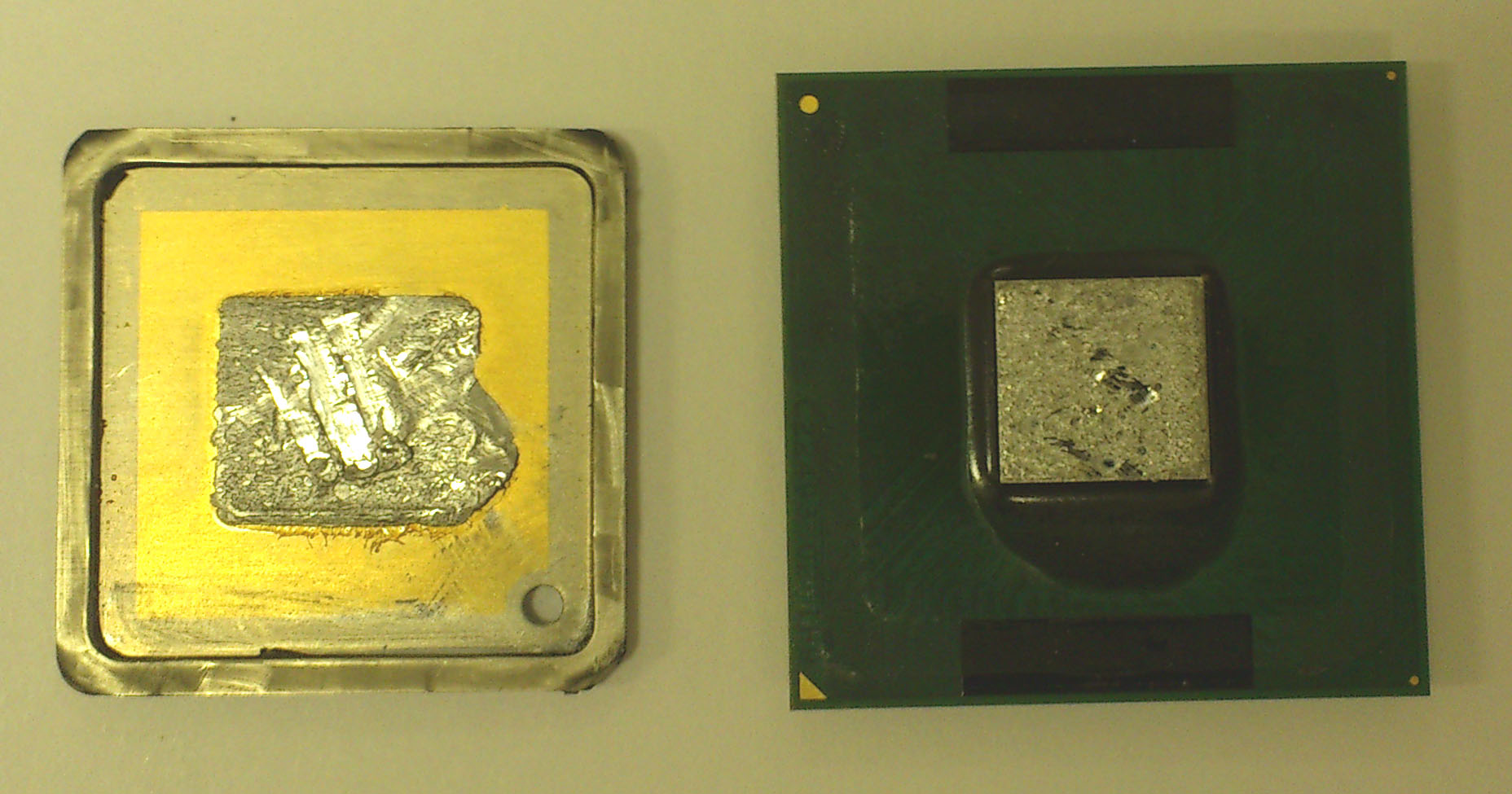 Куратору темы. Процессор Pentium 4 Northwood 3.00GHz/512/800 SL6WK. Термоинтрефейс между ядром и крышкой ПРИПОЙ, а не термопаста, как сказано в начале темы. Может быть у Селеронов и паста, но у этого припой. Надо поправить, чтоб люди зря не мучались. Фото прилагаю.