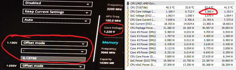 как писал ранее все зависит от "удачности экземпляра" , планки кстати это вот эти G.Skill TridentZ F4-3600C16-8GTZ так себя ведут...может и на 53,3 работают, я лишь скинул по причине феномена накидывания напряжения на сок и таймингов- низкой латентности