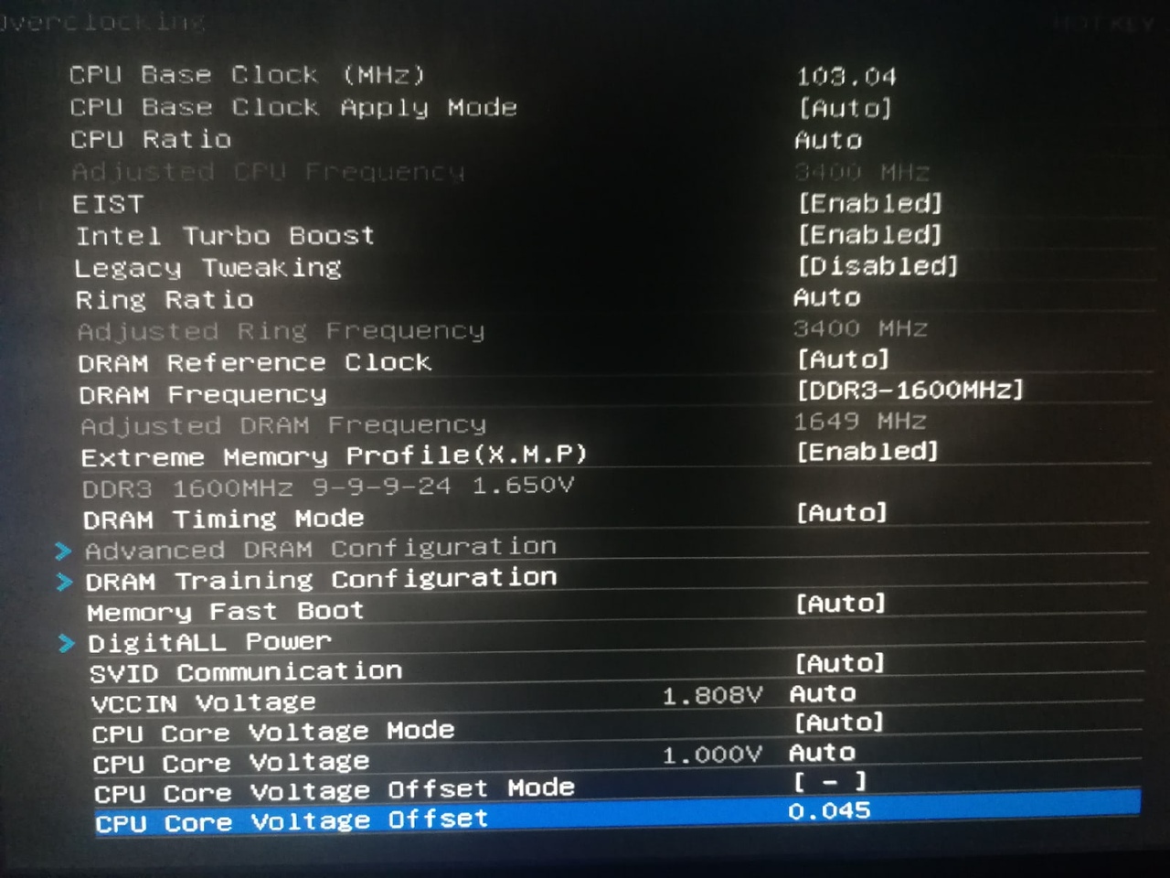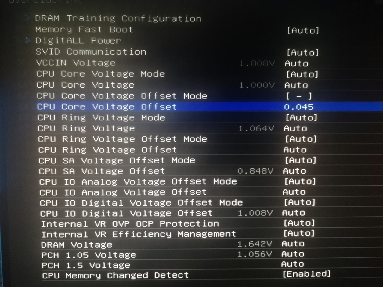 У меня например e3 1230 v2 работает в авто на овсет в - 0.0055v (если не ошибаюсь), то есть на пониженном напряжении (с авто регулировкой) и с шиной 103, при этом производительность выше, а напряжение и температура меньше, чем в стоке.