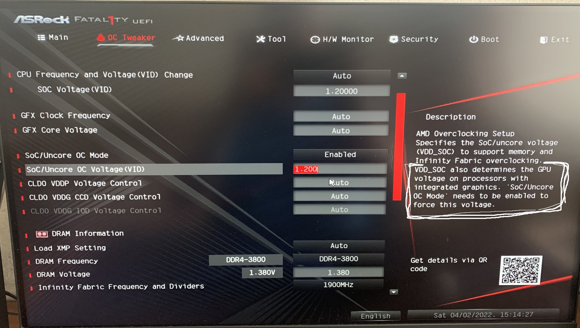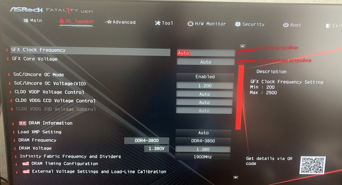 еще момент. Сейчас в биосе все вот так выставлено. Методом тыка и по совету vol2008 выяснилось что vsoc на память выставляется в этом пункте. Но вот смотрю его описание "VDD_SOC also determines the GPU voltage on processors with integrated graphics." и не пойму никак , как он влияет и что делает с напряжением GPU (это же про встройку?)?