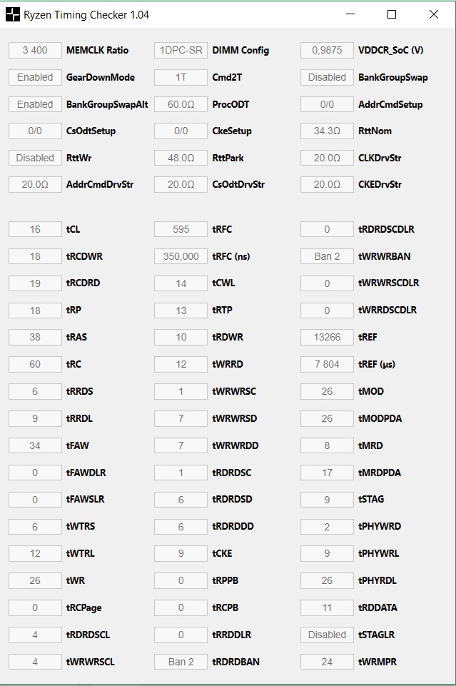 У тебя две такие плашки, можешь попробовать ужать tRC=54,56,58,60 и tRFC посмотри в калькуляторе альтернативные значения и начни с малого 510, 442. Может потребоваться регулировка SoC и DRAM V.