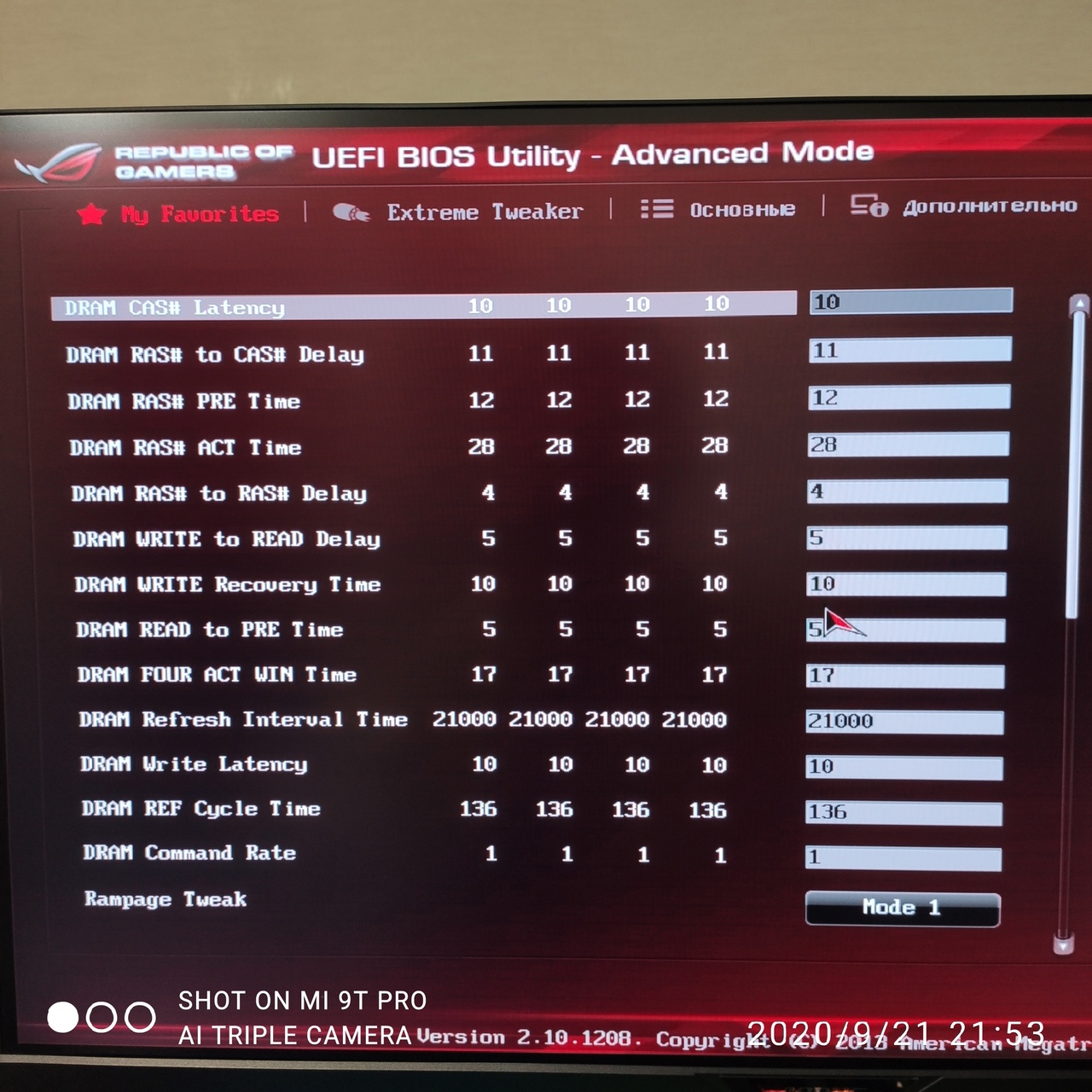 да что опять не так.)) Refresh Interval (tREFI) - переставить с 32767 на 32512? Write Recovery (tWR) - 9 вместо 10 запустилось (15 на авто было) FOUR ACT WIN (tfaw) - 16 вместо 17 смогла (27 на авто было) Write Latency (tCWL) - 7 вместо 10 (8 на авто) CKE Minimum Pulse Width (tCKE) - у тебя нет на скрине... но у тебя и С3/С6 отключено, так что поф увеличивать тайминги? в данном случае то норм зависимость должна быть, и меньше = лучше/быстрее, не?