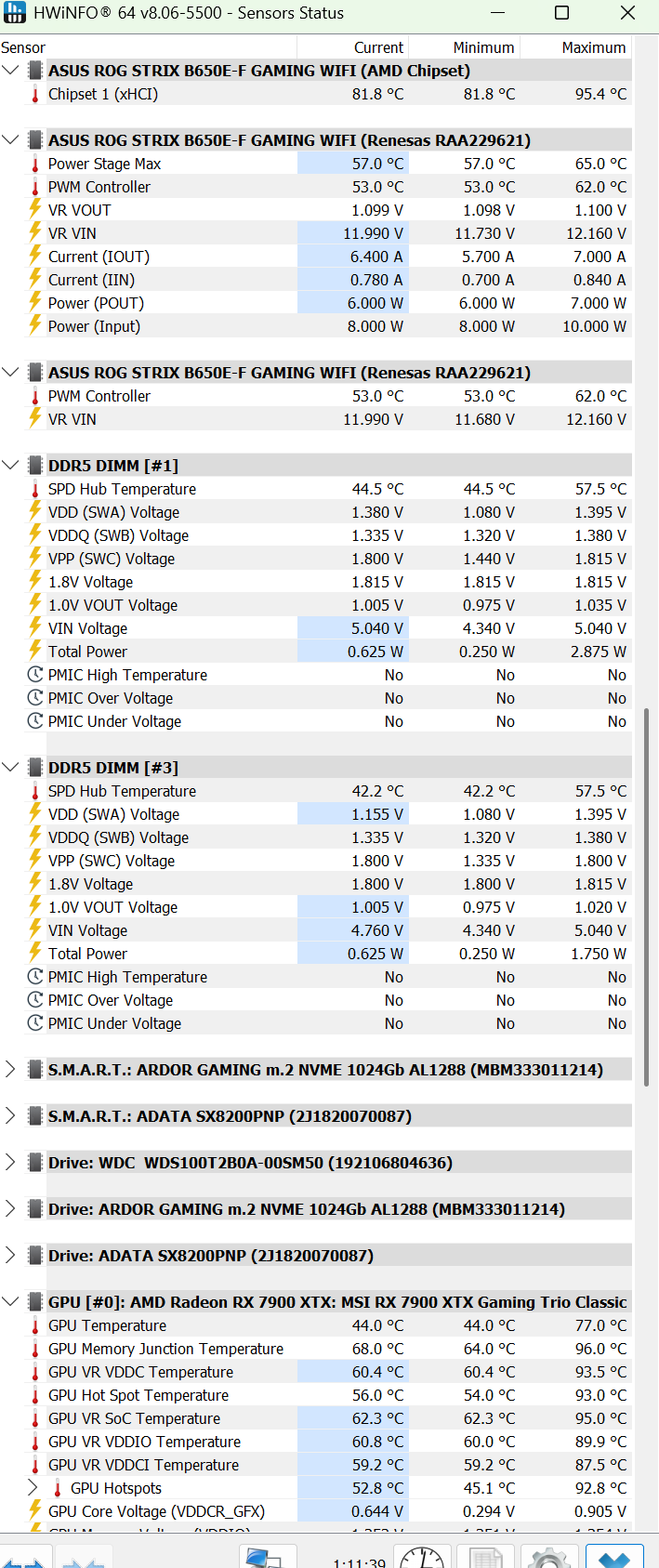 Други подскажите, конфиг в подписи, температура чипсета B650E по мониторингу в HWInfo64 85-90 градусов, это приемлемо? Видяха думаю кочегарит его