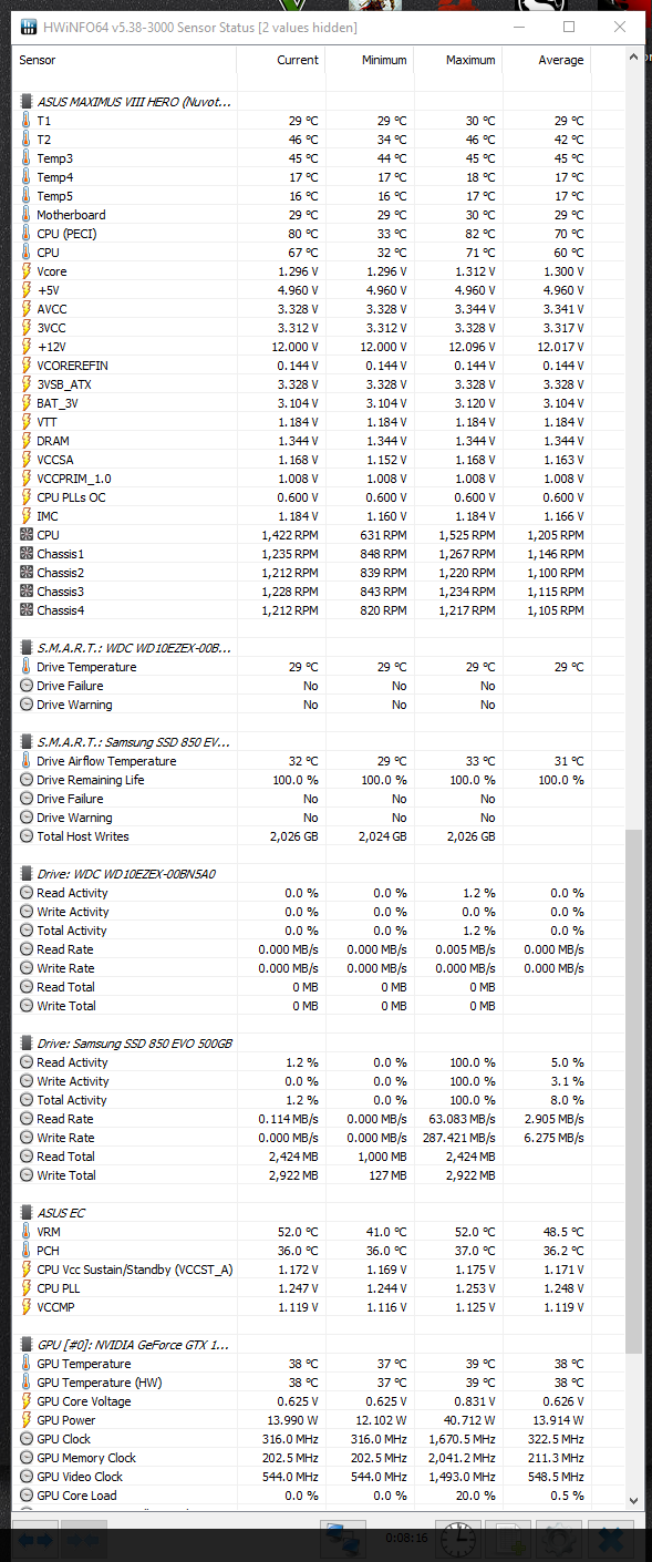 Добрый день.... Собрал себе систему на базе Intel i7 6700k+кулер Noctua D15s, GA z170 Maximus VIII HERO, GPU 1070 gigabite Extreme Gaming, DDR4 Kingston Savage 2800 mhz 2x8 (16gb), БП STRAIGHT POWER 10 600W CM, Все все это засунул в корпус Fractal R5 + поменял на 4 штуки 140мм кулера от Ноктуа (2 на вдув 2 на выдув)...
