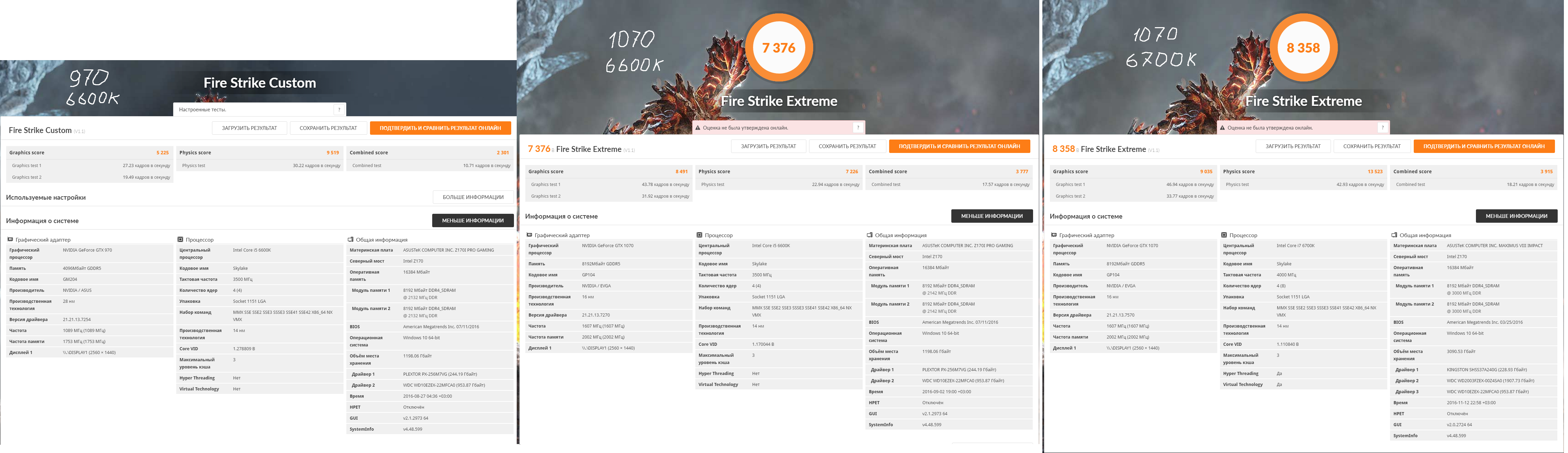 3. Fire Strike Extreme (DirectX11 - тест показывает производительность ПК с 2К-монитором). С 970-й почему-то я не сохранил эталонный тест, только с ручными настройками. Я посмотрел - они такие же.