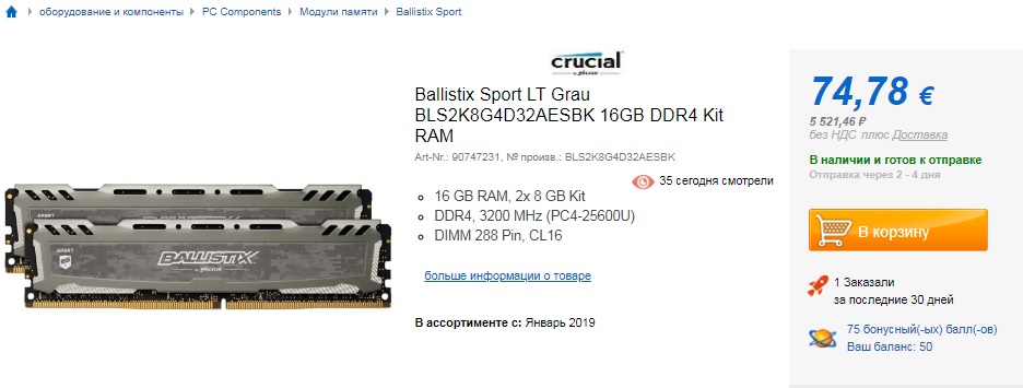 вторую надо Crucial Ballistix Sport LT 3000 MHz CL15 BLS16G4D30AESB