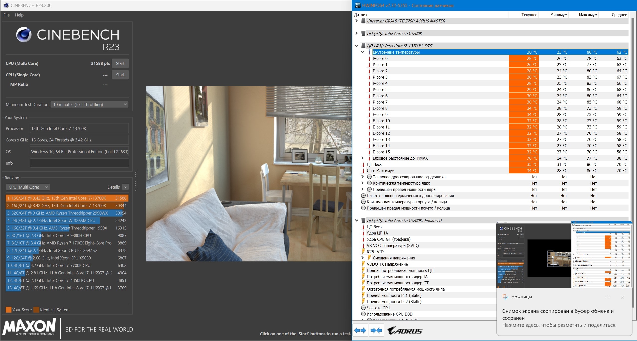 Это точно... Ничего не видно, результат чуть выше, чем у стокового 13700К... 30500-31000(у стокового).