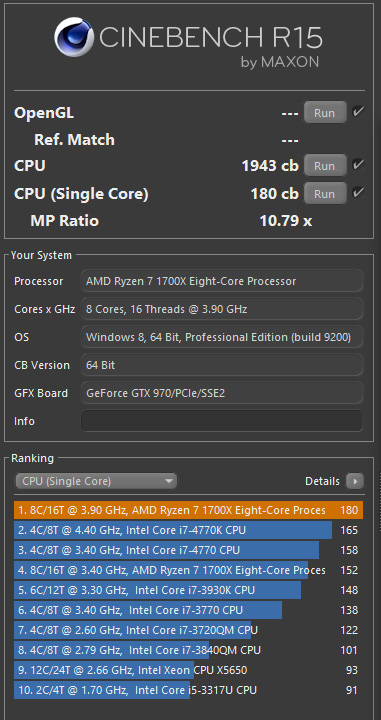 Всем привет! Собрал систему на Ryzen 1700X, msi b350 tomahawk, память 4*8Gb 2666. Мне комп нужен в основном для рендера. В разогнанном состоянии выдаёт следующие показатели: