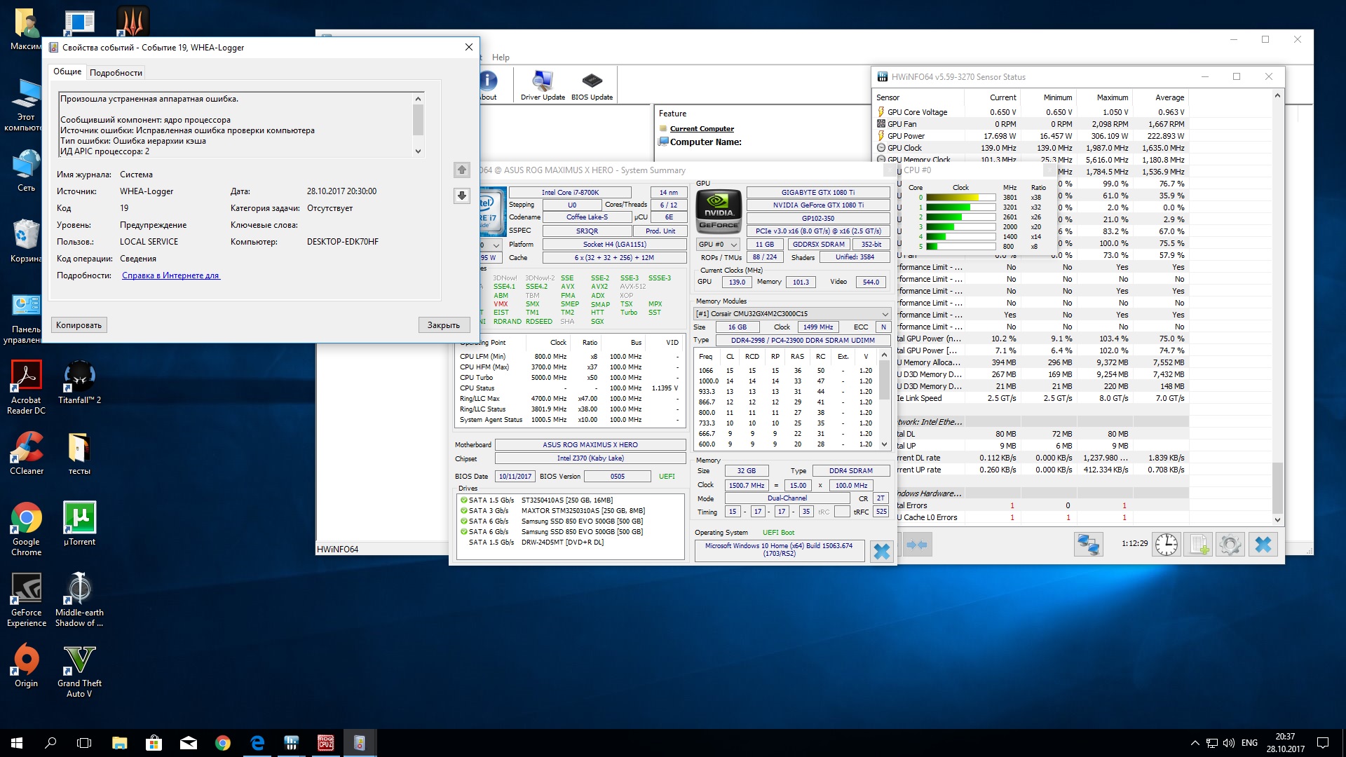 я уже напругу до 1.29 поднял (50 множитель -3 авх), ибо по прежнему после каждого синего экрана на 0.005 поднимаю. по мониторингу правда в нагрузке до 1.264 падает с ллс6. опять уже почти сутки норм, но так было и на более низких напряжениях, а в итоге бсод.