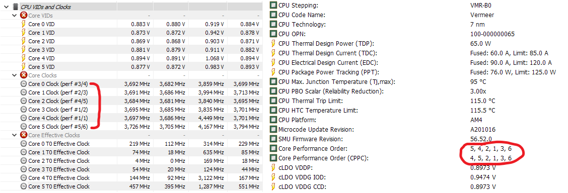 А core performance order - на втором скрине - не, не видно? ) И какая разница, какие офсеты? Смысл в их подстройке - обеспечить одинаковый Vtarget/Ftarget в определенной нагрузке.