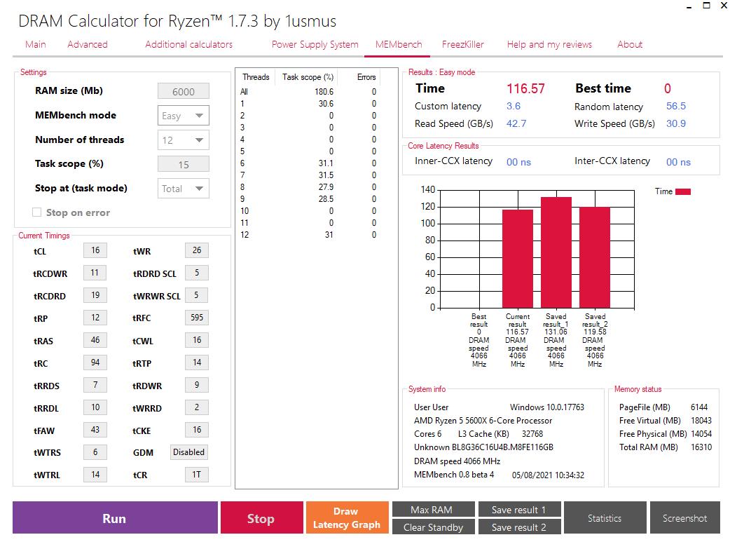 Просьба, можешь прогнать dram calculator membench easy preset, в 2000 или 2033, без разницы (у меня остались рез-ты в обоих конфигах), чтоб сравнить, и еще выложи пож. Debug log в ZenTimings. И если можно, еще GB5.