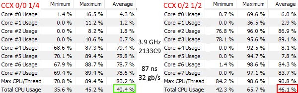 Влияние частоты инфинити фабрик и латентности на производительность/загрузку CCX комплекса и процессора в целом.