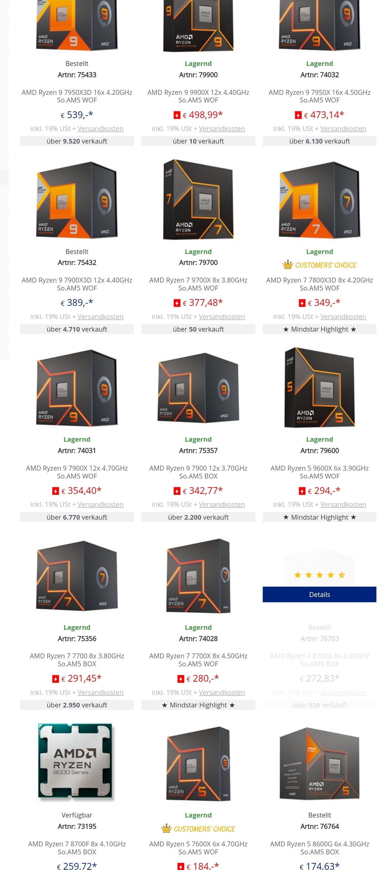 ну тогда ценник на 9700х не должен быть одинаковым с 7800х3д а он по факту выше на 10% за 9950х тут вопросов нет, кому нужна числодробилка, это один из лучших вариантов, хотя опять таки цена высокая сейчас слишком.