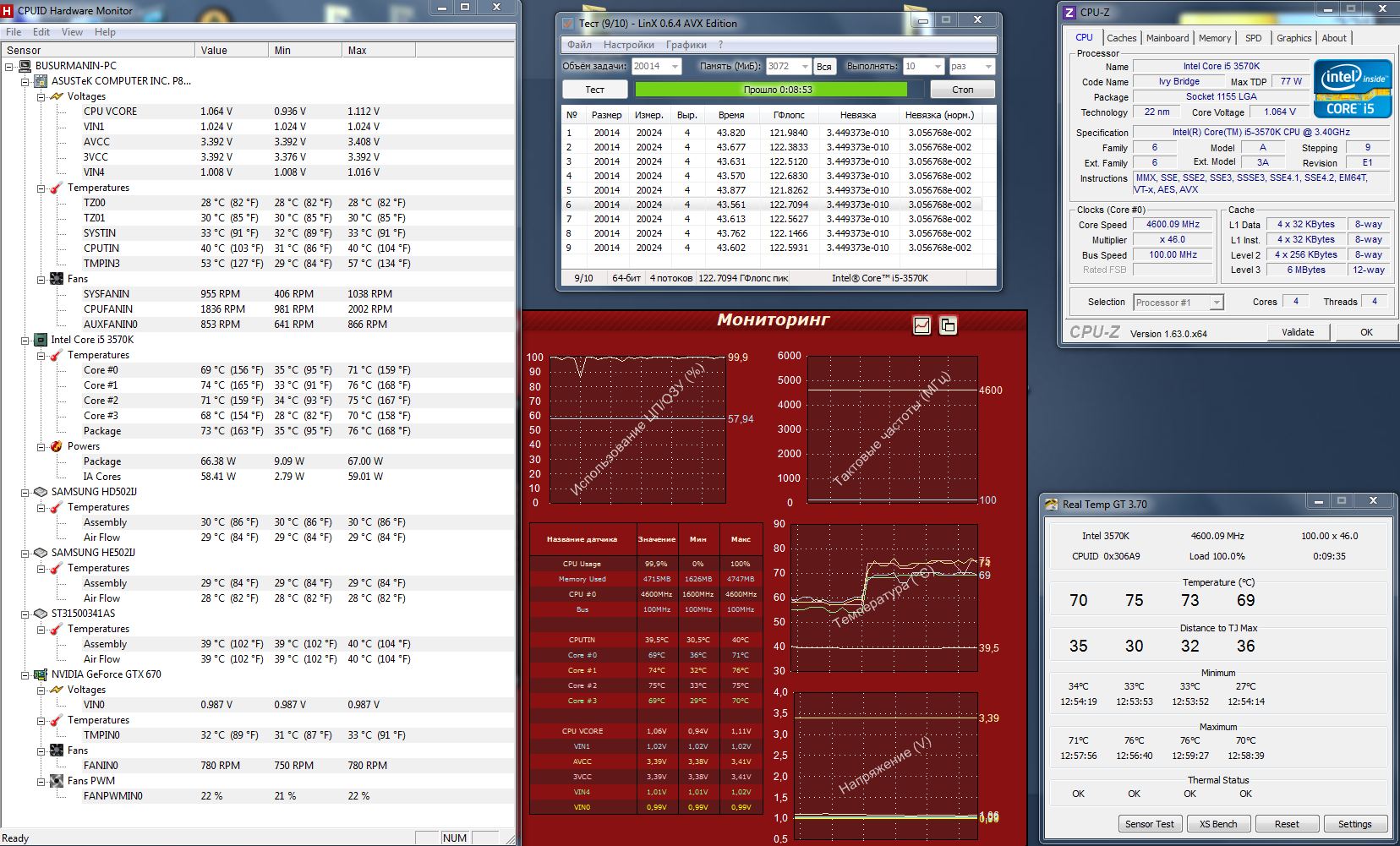 привет всем скажите хочу переходить на платформу ,без разгона 1155 и Core i7-3770 3.4GHz (TB up to 3.9GHz) 8Mb 2xDDR3-1333 HDGraphics4000 TDP-77w LGA1155 OEM мать 2215 Материнская плата GIGABYTE GA-P75-D3 s1155 B75 4xDDR3(1600), 2xPCI-e x16(ч16+ч4)+1xPCI-e x1+4xPCI, 8xAudio, GBL, 1xSATAIII+4xSATAII+mSATA RAID, COM+LPT, 4xUSB3.0, 8xUSB2.0, ATX RET будет ли заметна разница при смене на эту платформу в играх относительно fsp??? о да и подойдет ли мой кулер на этот проц?(IH 4350B верия 2) мой профиль............... Процессор AMD Phenom II X6 1075T B3,0 ГГц>GA-970A-D3 (rev. 1.0) IH 4350B 4x4 Hynix.... 2х2 samsung m378b5773dho-cko 10-10-10-27 OCZ-VERtEX2 SATA Disk Device(1.37) Hitachi HTS547575A9E384 SATA Disk Device Hitachi HDS721010CLA330 GeForce GTX 550 Ti(сменил!!!!!!!!!!!!!!!! на Palit GeForce GTX 670 JETSTREAM (1006 МГц (1084 МГц, в режиме Boost\1527 (6108))2048MB GDDR5)) питалово FSP 600w игры крайсис3 Far Cry 3(30-50fsp) гта 4(20-40fsp)