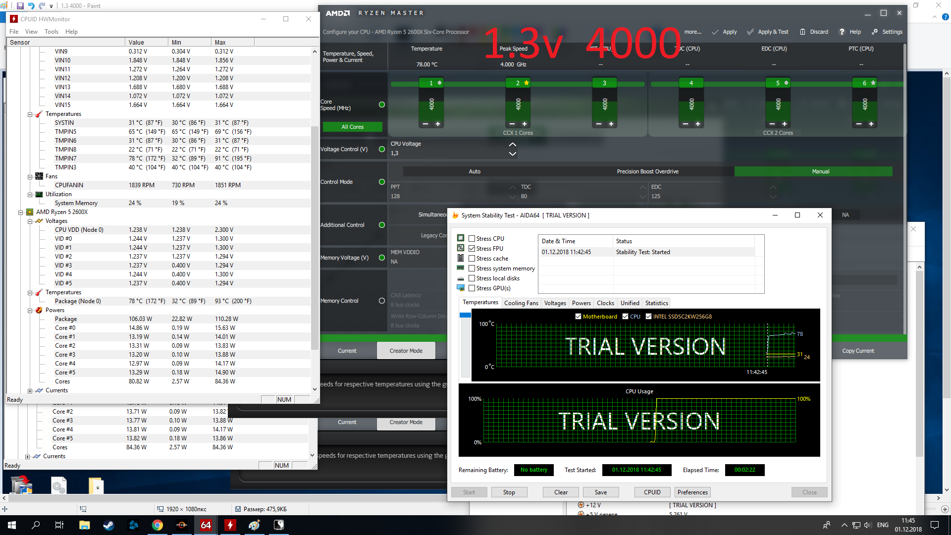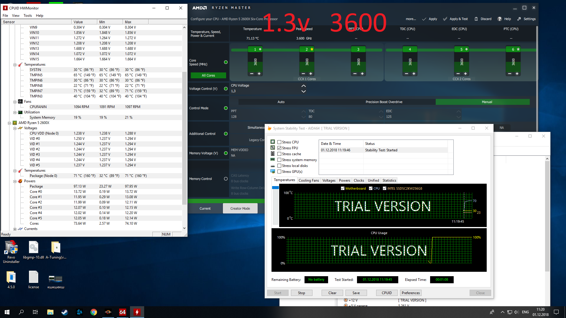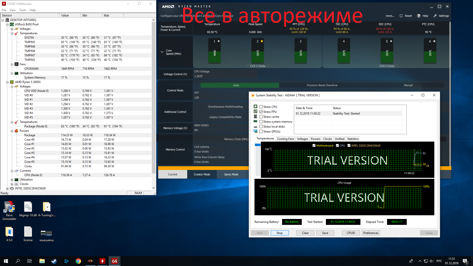 Всем доброго времени суток ,уже писал на этот форум,направили в раздел с райзенами. Проблема в высокой температуре процессора при стрестесте аиды64 и в принципе в простое тоже. Система у меня Ryzen 2600x. кулер на проц DC Lucifer k2 . asrock b450 pro4. 16 gb ram. БП Enermax revobron 600 и корпус Zalman n3 В простое с гамакс 300 температура была в районе 35-56 градусов( просто нахождение в биосе 40-50). С deep cool lucifer k2 в простое 30-46(в биосе 40-45), нагрузка в простое на цп 0-3% и температура плавает , набирает резко с 30 до 46 и потом за 5 секунд опускается обратно. Вот немного информации с теста аиды В авторежиме прогрев самый сильный , вольтаж иногда доходит до 1.39 и температура 86, НО еле-еле долезая до трубок радиатора они оказываются не так сильно разогреты, по ощущениям они примерно такие же теплые как видеокарта при 55 градусах. Везде пишут ,что если проц грубо говоря 70-80 градусов,то трубки должны быть очень горячими и чуть ли не обжигать палец ,палец я спокойно держу без какого либо дискомфорта. Думаю ,что возможно не правильно установлен кулер,но это уже 2-ой кулер. Первый был гамакс 300 и она оооочень туго притягивался стандартным креплением для ам4 и на нем вообще температуры сразу поднимались 95 градусов. Сейчас стоит люцифер к2 и на нем уже крепление через переходник ам4, там все закручивается с отвертки и тоже достаточно плотно. Термопасту наносил равномерно и как можно более тонким слоем. На гамаксе была родная термопаста ,на люцифефре deep cool z5.Вообще возможно ли что все программы мониторина температуры врут? Ну то есть я исхожу из того,что если кулер установлен правильно и при этом температура 84 градуса ,но трубки хорошо если 50. Что еще можно сделать и куда смотреть Показатели БП все в норме ,нету просадов питания либо завышенных значений.