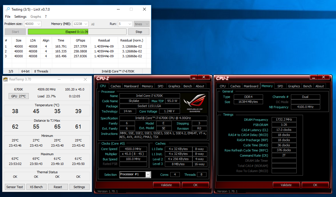 Времени особо не было тонко настраивать, сегодня встал в 5 утра и поковырялся)) 5Ghz 1.408-1.424v (в максимальной нагрузке 1.408, в более низкой 1.424), кэш поднял до 4.6 (было 4.5, на 4.7 bsod), память опустил до 3333 и вольтаж до 1.34, она выбивала ошибку через какое то время. И еще кое какие вольтажи подкрутил. В общем пока что так... почти 280Гфлопс. И это в комнате 26 градусов, а комп не так уж далеко от батареи стоит Так что при 1.3v и 4.8Ghz никаких 85 градусов после скальпа явно не будет #77 Воду заказал, как получу может еще что нибудь натестирую