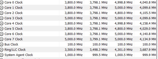 Spread spectrum в биосе оказывает влияние на частоту BLCK. При его включении начинает плавать еще и частота BLCK, падая до 99,98. При отключении держится ровно 100,00. А вот FLCK плавает все время, не зависимо от включения/отключения спектрума. На 7700к при отключенном spread spectrum частота точно не плавала, всегда было ровно 4800, тут же ~4690