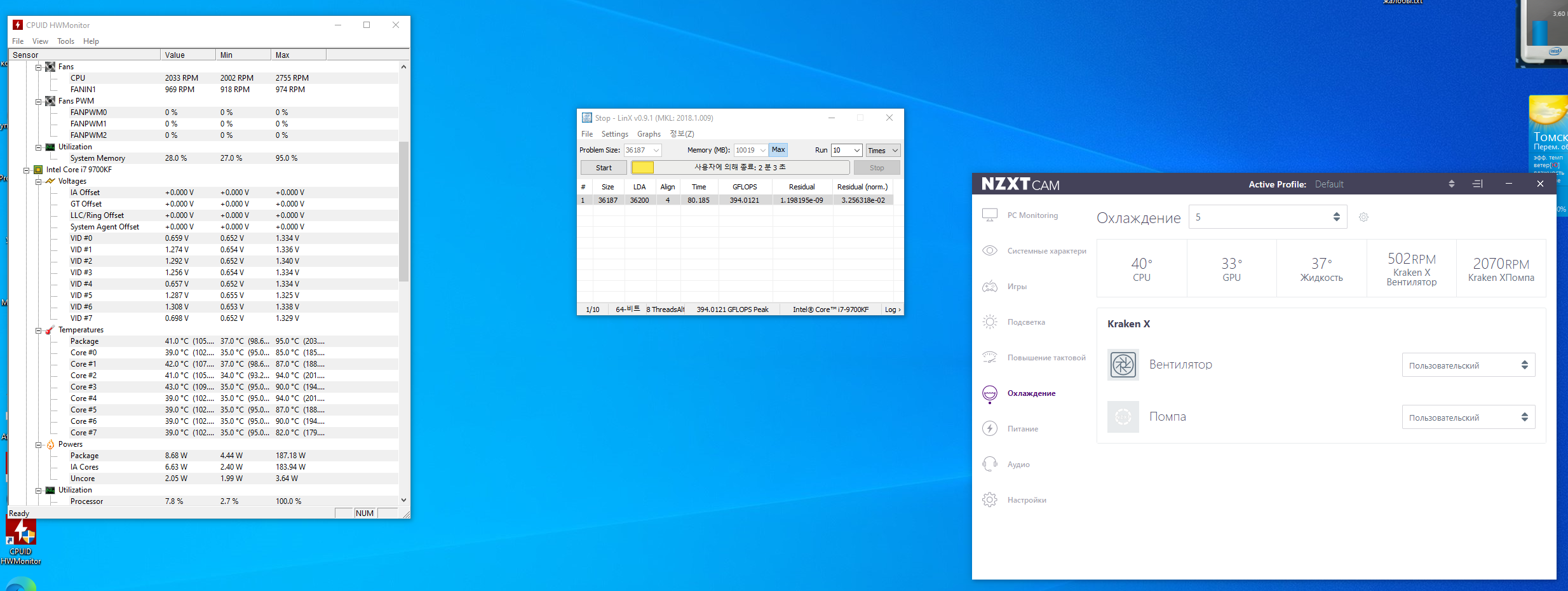 С прижимом точно все нормально - проверял, когда менял термопасту. А как проконтролировать скорость вращения? В программе от водянки (NZXT Cam) показывало максимальные обороты помпы и вентиляторов на радиаторе.