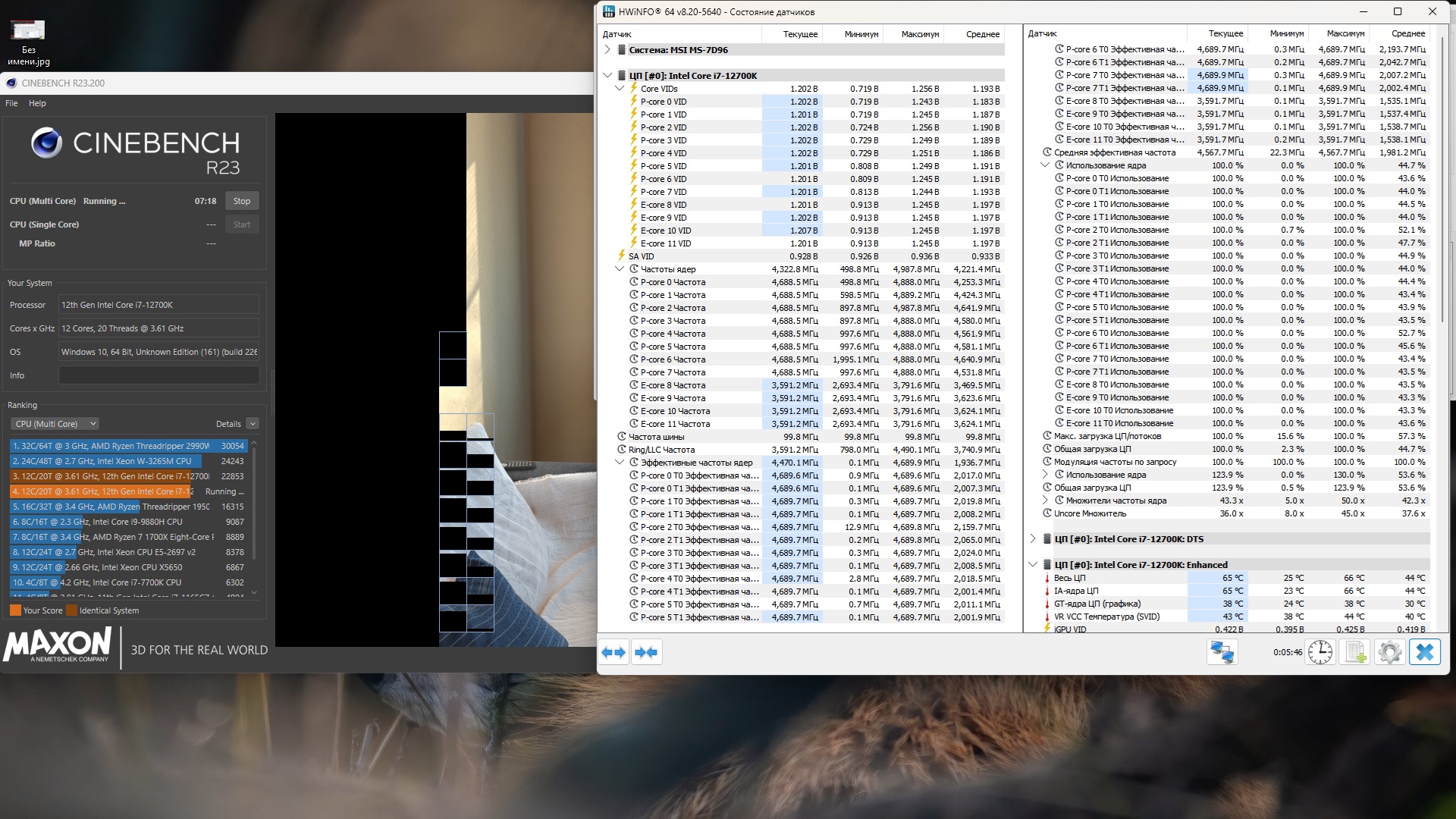 vCore в момент теста 1,086в - возможно мало, проверить в СB23 не падает ли производительность. Достаточно мониторинга HWINFO64, остальное не надо, только расширить его (внизу слева стрелки), чтобы были видны Core VIDs, частоты обычные и эффективные.
