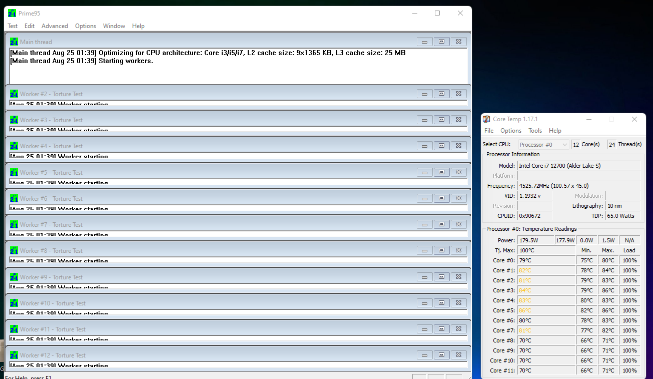 fovka92 писал(а): Владельцы 12700k поделитесь пожалуйста вашими температурами в стоке. У меня напряжение выставлено фиксированое 1.115, кулер Neptwin. В Аиде температура 80-82, потребление 140. В сб23 потребление 160 примерно температура 88-90. В играх 55-65 иногда до 70. Как думаете, нормальные температуры?