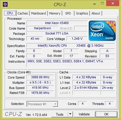 Приветствую снова! Итак, пришел ко мне мой долгожданный процессор из Китая - X5460 E0 на замену моему Q8400S. Чудесно завелся на P5B-Plus. Сразу же разогнал его до 4.0 вообще без вопросов. Всецело доволен я!