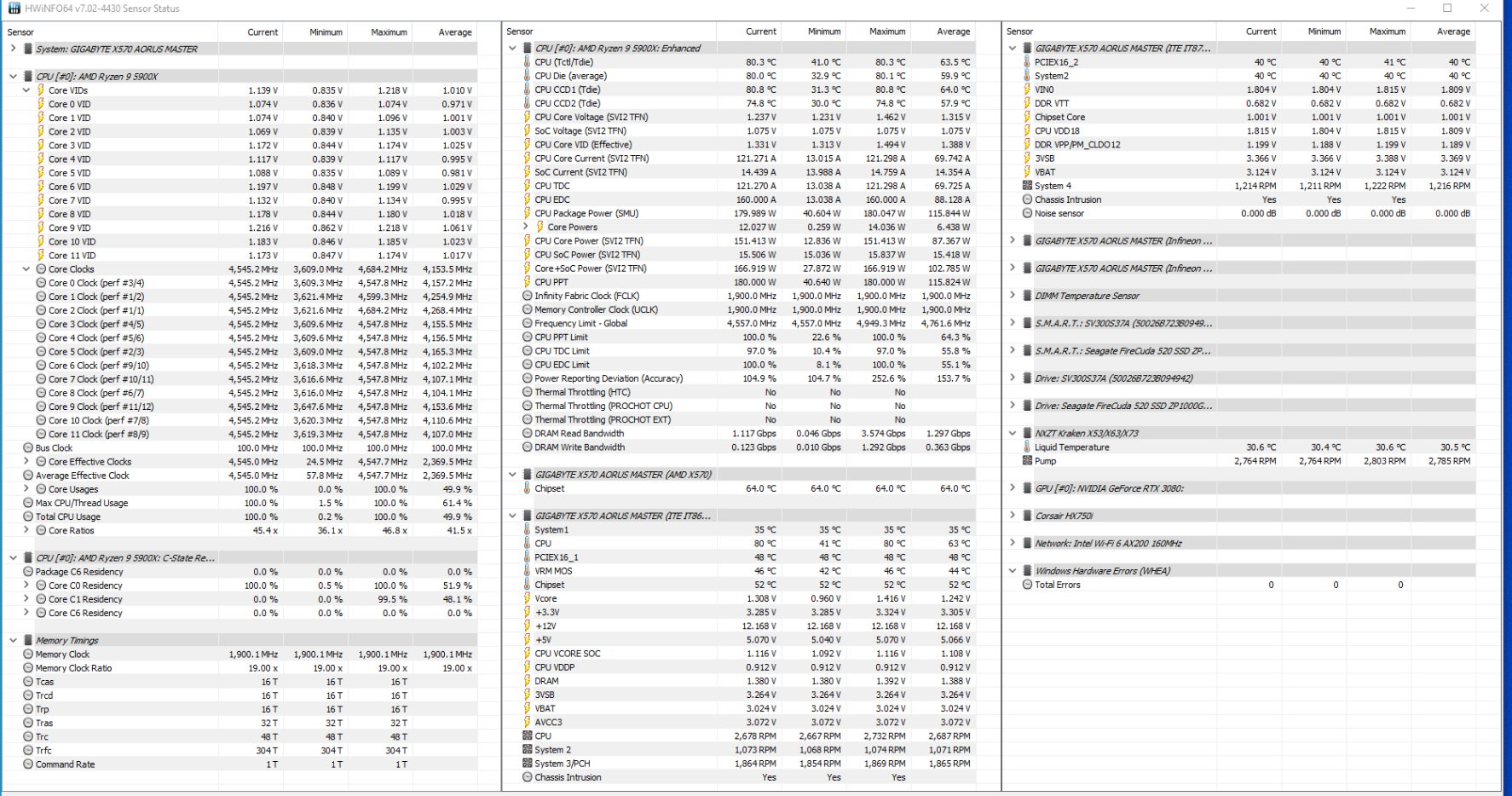Делюсь болью и страданиями! В начале 2021 года купил я 5950X и материнку ASUS X570-I всё настроил спустя пару месяцев, радовался. Спустя пол года начались приколы, за неделю разок проскакивали ошибки WHEA Logger, по одной, потом через пару месяцев вообще критически ошибки WHEA Logger начали появляться и ребуты, причём под малыми нагрузками при просмотре видео или ютубчика, или при свёрнутой игре на паузе. После перепаковки водоблока на видюхе остались термопрокладки Gelid GP Ultimate, разобрал материнку, поменял термопрокладки на VRM, на обратной стороне VRM и на чипсете и вуаля, всё как рукой сняло. Напряжения CLDO VDDP, VDDG IOD, VDDG CCD получилось снизить до старых пределов. Какая связь между WHEA и охлаждением материнки я ХЗ. Но изначально начало помогать тупо обдув вокруг сокета 120мм вентилем. Теперь и без вентиля работает. Посмотреть бы на материнку в тепловизор.