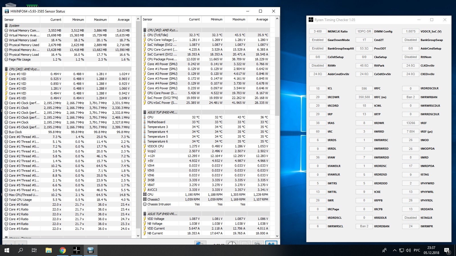 Всем привет ! Поменял 1600 на 2600Х, и решил подразогнать память еще выше. Вот чего пока добился, но через 59 минут теста в Аида 64 крашится тест памяти. Можно ли считать стабильным такой разгон ? Напряжение на памяти 1.44 V Тестмем не пользуюсь, так как он может гонять долго, а в Аиде ошибки вылазят сразу, если они есть, и можно ли еще как то улучшить разгон ? Еще не понял одного, почему в HWmonitor показывает минимальную частоту процессора во время теста 4200, а максимальную 4400 ???