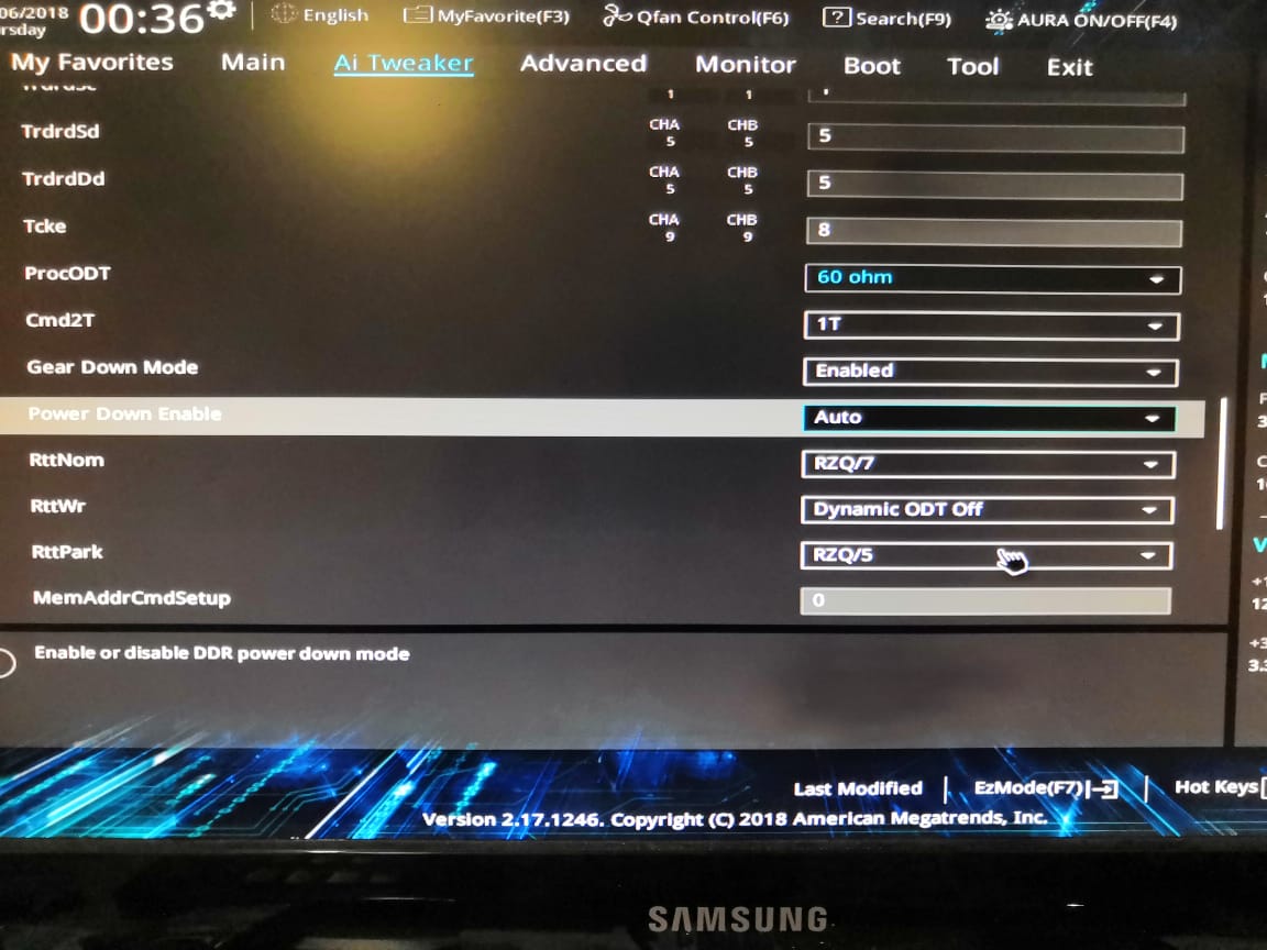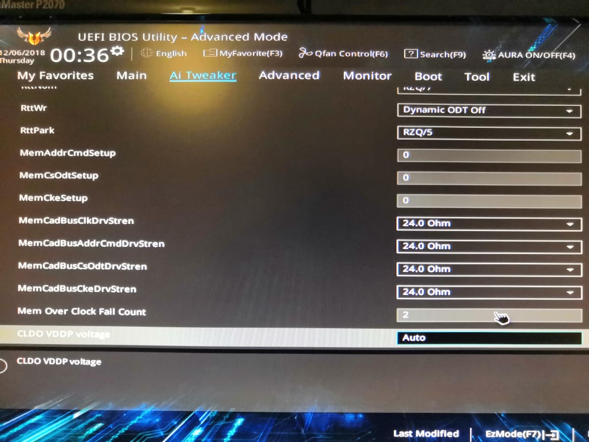 Добрый день, помогите разогнать память. Выставить и стабилизировать тайминги. Текущие настройки: VDCCR SOC Voltage 1.1 DRAMM Voltage 1.405 VTDDR Voltage 0.702 (auto) -- пробовал выставлять +0,02 VPP_MEM Voltage 2.5 (auto) -- пробовал выставлять Digi + VRM -> VDDCR SOC Load Line Calibration High CLDO VDDP voltage auto Тайминги: 18-20-20-20-38-60 - остальное в авто. При снижение таймингов появляются ошибки в тесте, остальные тайминги не знаю какие вручную вбивать. Пробовал те что в калькуляторе выдаются, либо приводит к не запуску, либо к ошибкам. VTDDR Voltage пробовал выставлять +0,02. VPP_MEM Voltage пробовал выставлять 2,52. DRAMM Voltage проверял шагами от 1,35 до 1,41. CLDO VDDP voltage пробовал выставлять 927, 928, 929.