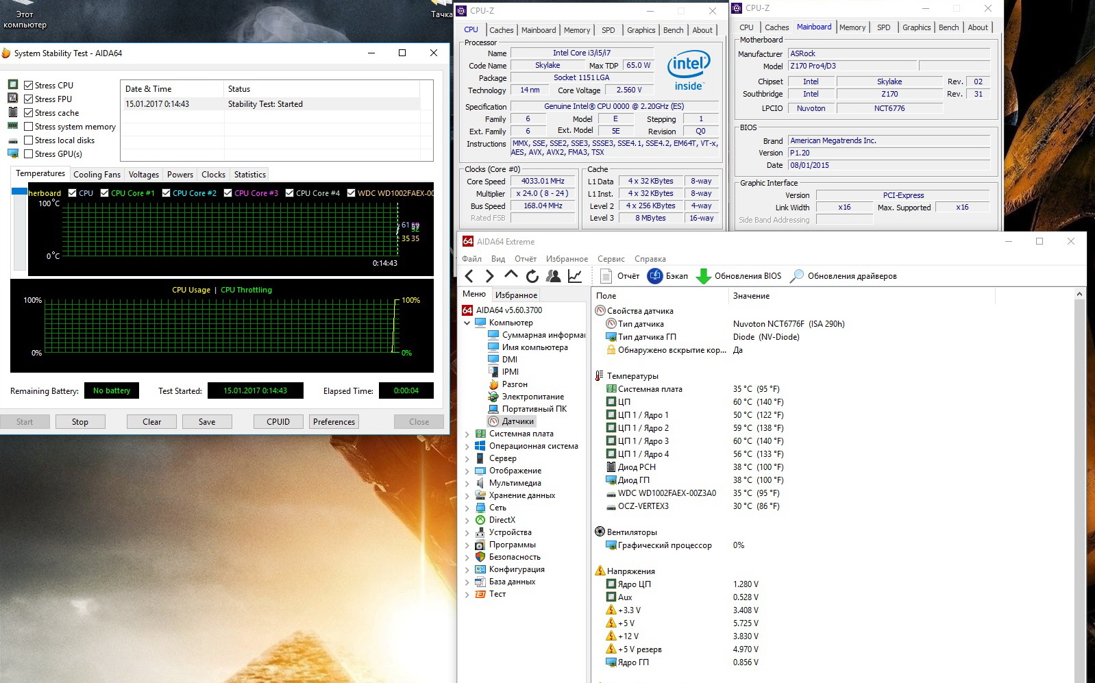 А что насчёт работы с памятью DDR3? Официально платформа Skylake работает с DDR4 и DDR3L. Но опытным путём установлено, что даже с планками DDR3 с рабочим напряжение 1.65В проблем не возникает при длительной эксплуатации. Есть наблюдения, что разгон на мат.платах с DDR3 затруднён из-за меньшего выбора множителей памяти.