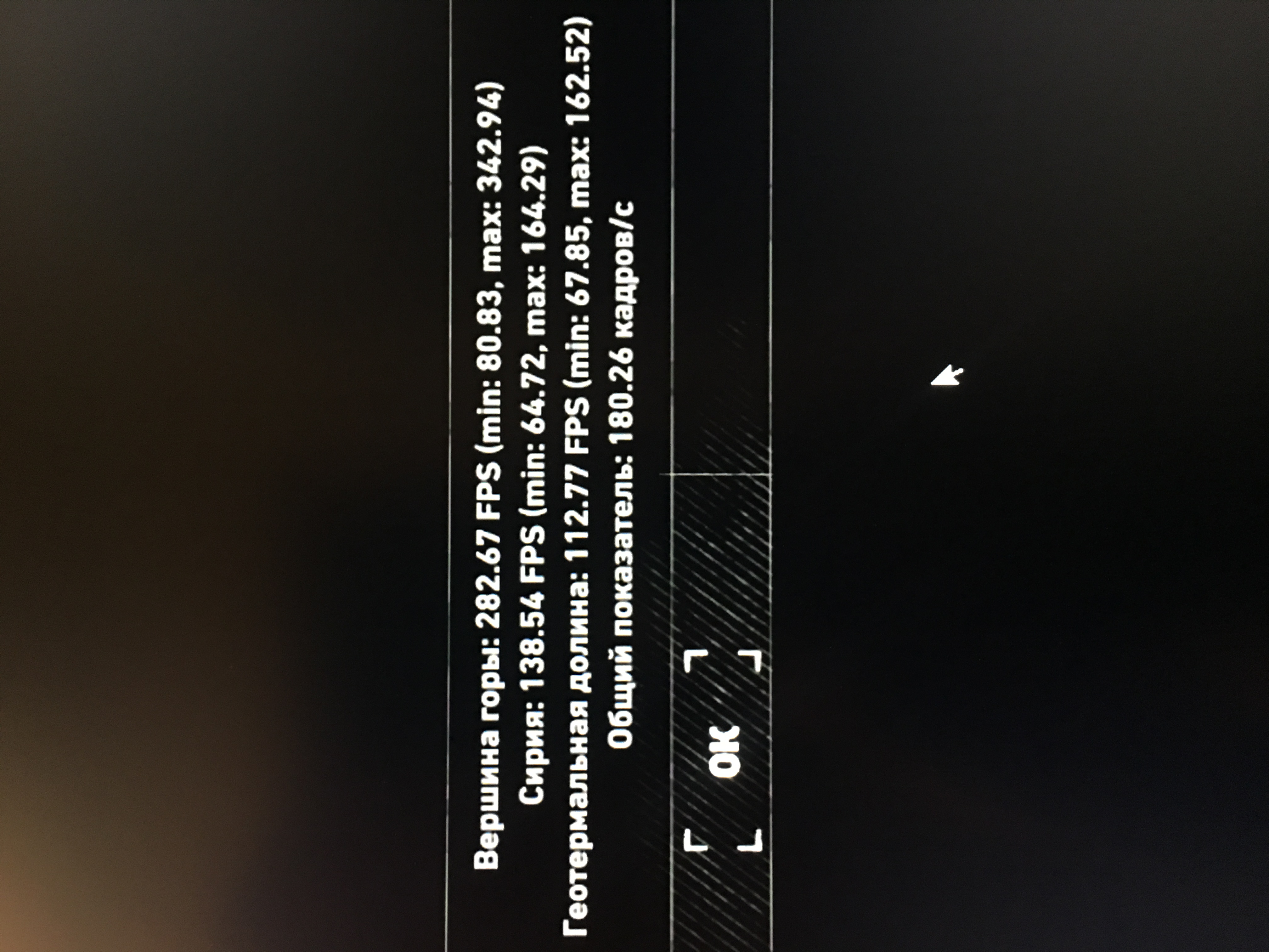 1usmus Где-то тут писали, что вершина горы тест GPU, а второй и третья сцены тест CPU. А то получилось R7+1080 ti - 180,26 фпс, R7+1080 - 179,66 фпс. Твои 138,54, 112,77 против моих 146,77 и 142,61.