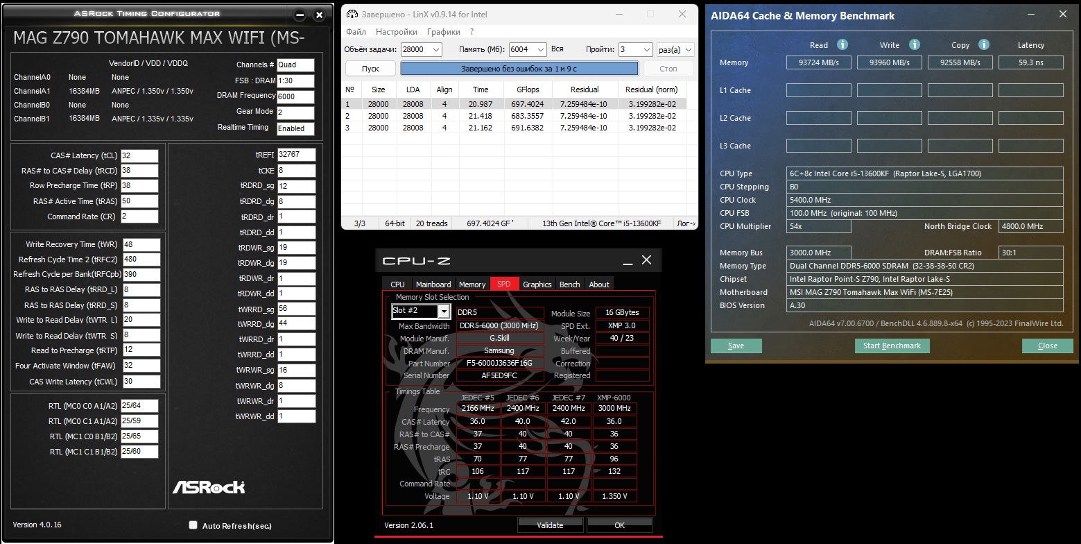 Приветствую. Провел тут маленький эксперимент. Влияние оперативки на попугаев в линксе и в аиде. Проц 13600KF - P54 E42 R48 + DDR5 6000Mhz + DDR5 7200Mz Почувствуйте разницу:
