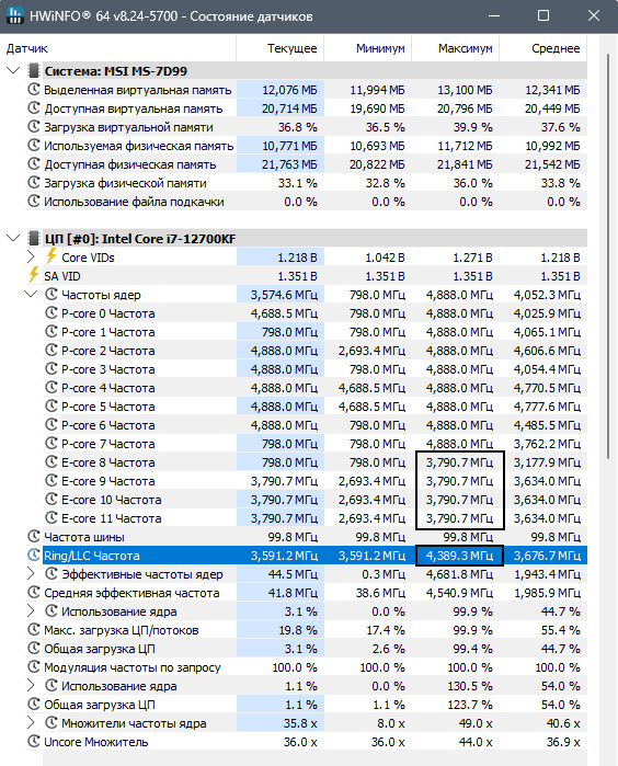 Вопросы: 1) Как может быть шина 4400 МГц? Если она не может быть более 3800 (или 3600?) 2) Я же разогнал кольцевую шину? 3) Почему все частоты у меня всегда неточные (например, BCLK 99,8 вместо 100 МГц, и все остальные частоты тоже "поползли" естественно).