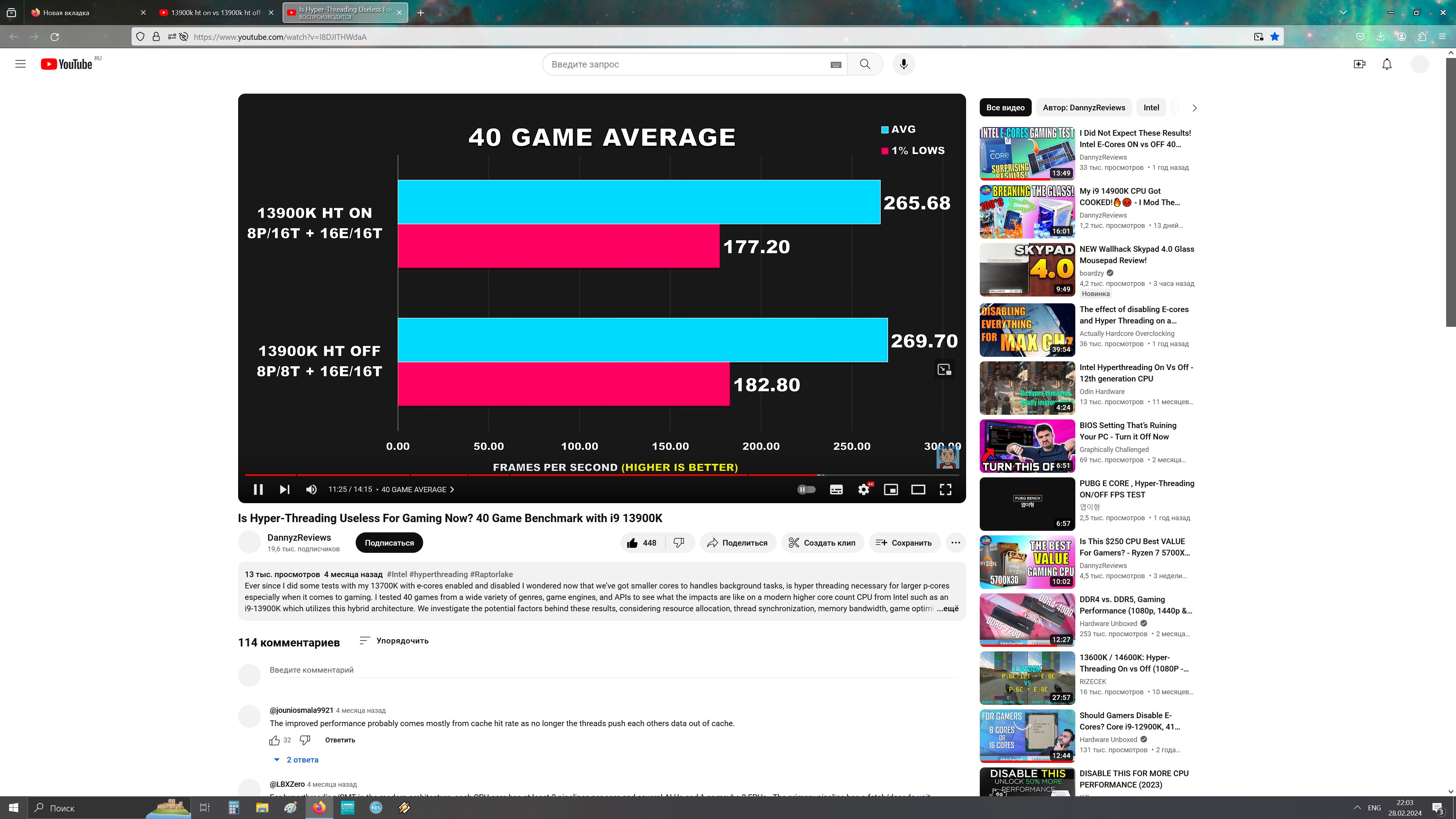 Добавлено спустя 5 минут 56 секунд: Винни-Пух Бредовый канал...Я видел сравнение кадр в кадр(с мин, средним, 0.1%)... 14900К был быстрее, либо паритет... Сейчас не могу найти... Причём...Это было на скорости памяти 6000... При 8000 на Intel он будет быстрее...