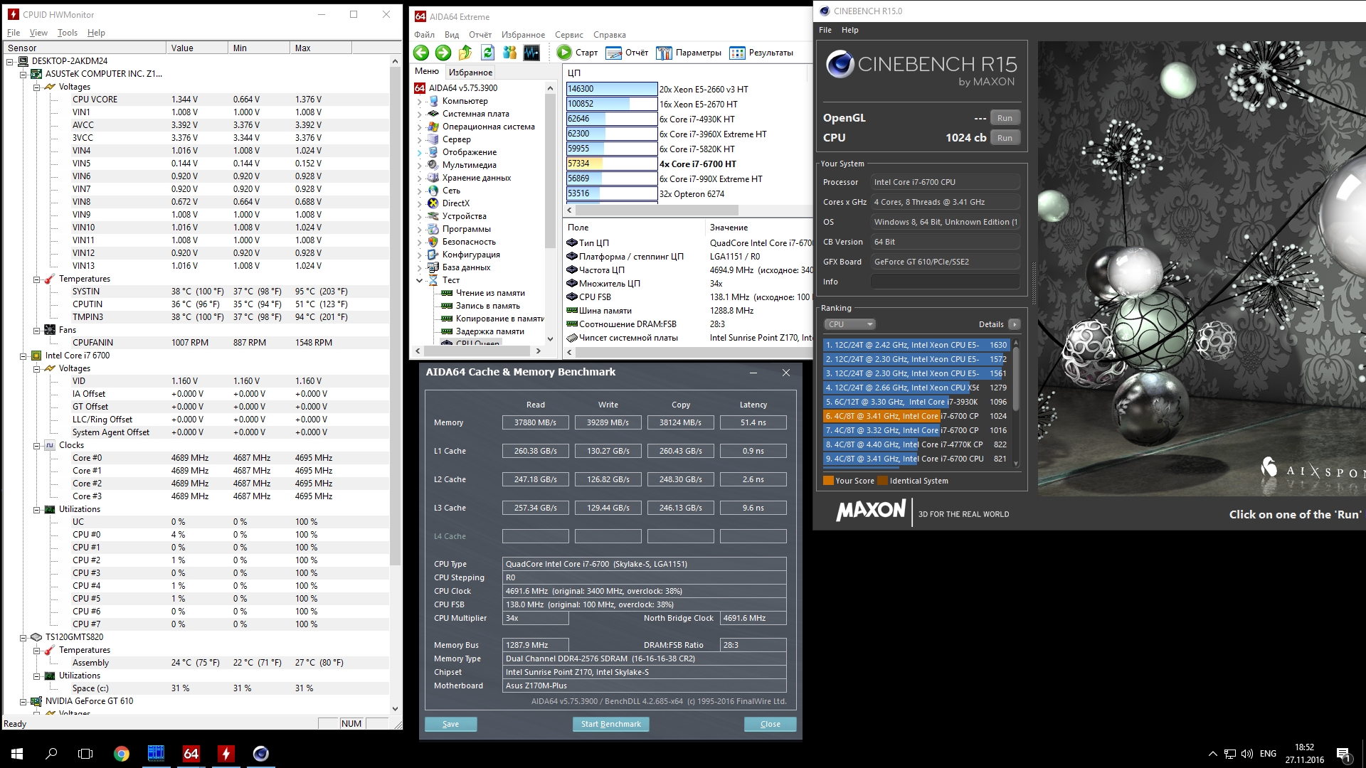i7-6700 @4690 1.325v - нормальный результат для процессора? 95 градуса с башней, 82 с водянкой. Странно, но до 82(95) греет только Cinebench R15 prime95 и прочие linx греют максимум до 65.