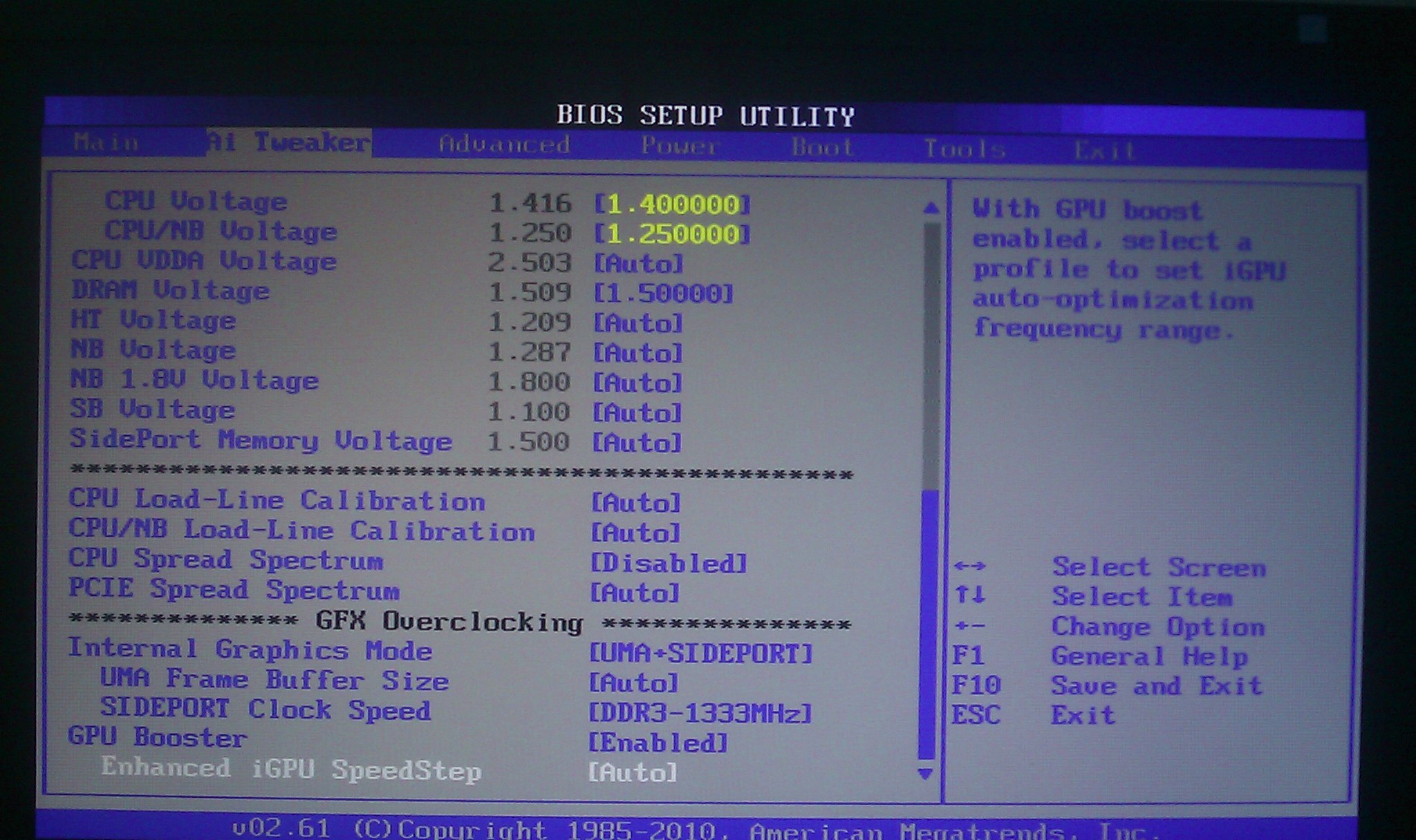 скрин 3 - Internal Graphics Mode - выкл CPU Voltage - 1.4500v последний скрин - DRAM Freqency - 1667 вместо авто