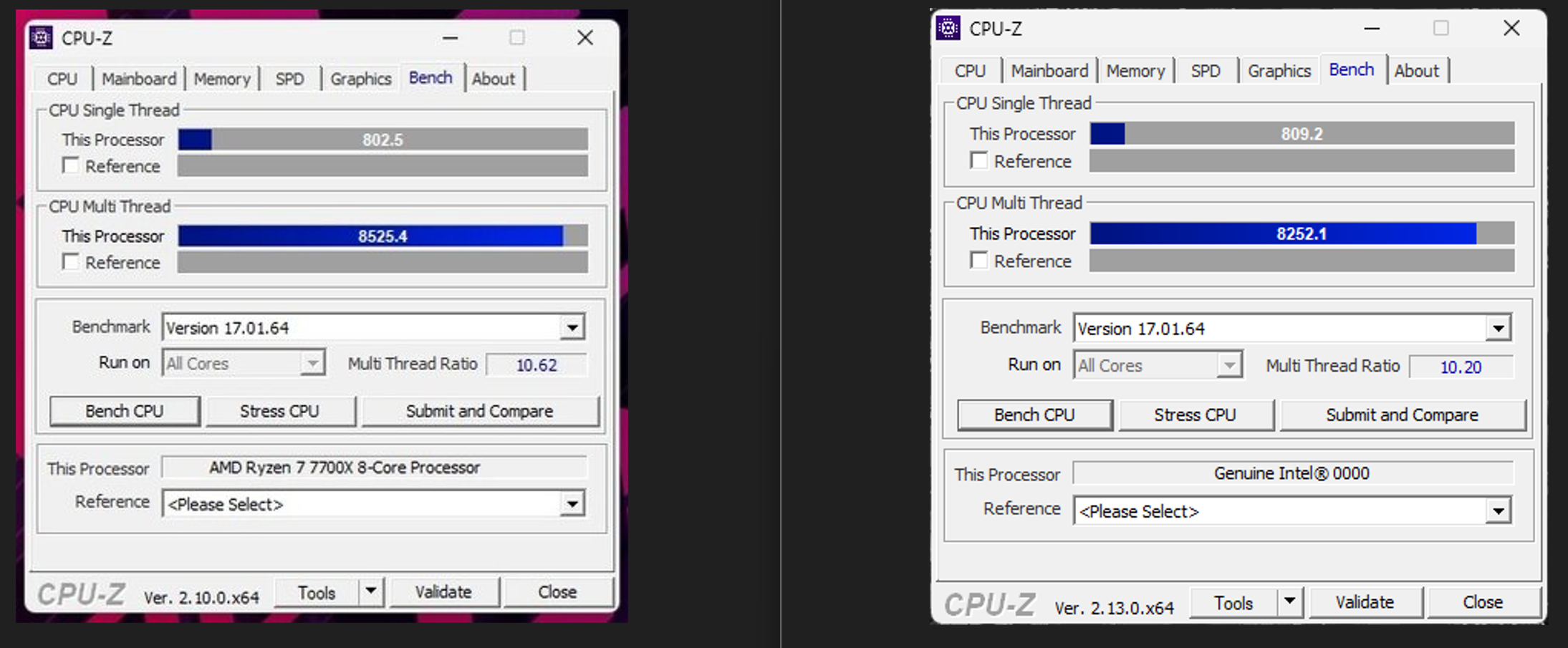 В CPU-Z 7700 нужна частота 5500 + шина 102.5 чтобы выйти на уровень alder lake на 5ГГц.