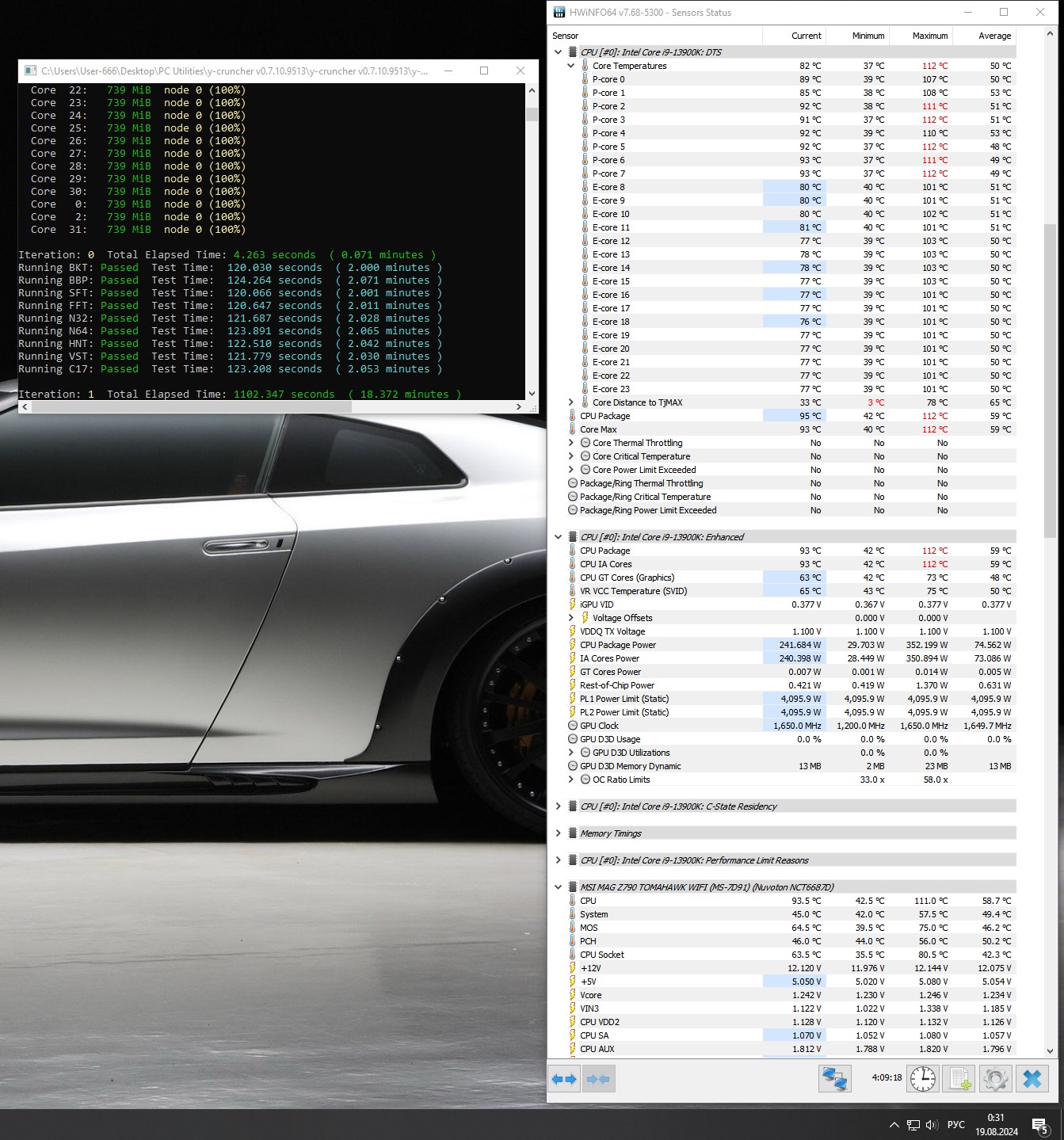 112 градусов, 352 ватта, это 13900К на фиксе 5.5/4.3 (all-core boost частоты по дефолту), в Кранчере. Температура за бортом градусов 30 была (середина августа).