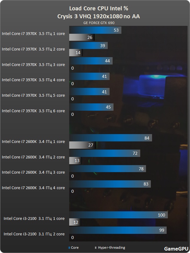 Да все норм у тя там где трава и деревья взрывы это физика , а в кр-3 ее оброботкой занимаеться проц и на картах где много подвижной травы деревьев и взрывов для этого проца в самых тяжолых сценах это норм . вот смотри тесты. http://gamegpu.ru/action-/-fps-/-tps/cr ... t-gpu.html А вот еще забыл смотри скрин как работают архитектуры видеокарт с CPU у тя 500-поколение (Fermi) оно много требует ресурсов от проца для загрузки видеокарты.