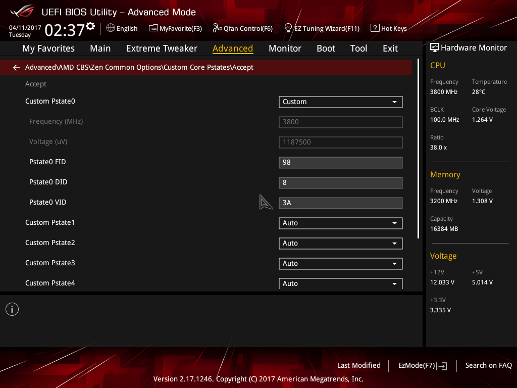 - Обычно поставляется в коробке с системой охлаждения Wraith Spire RGB (это круглая конструкция из целого куска алюминия с медной вставкой-испарительной камерой в основании и вентилятором с кольцом разноцветной подсветки, крепится к задней пластине разъёма AM4 четырьмя винтами). - Штатно имеет базовую частоту 3.0ГГц, частоту 3.2ГГц (технология Turbo Boost) при обычной многопоточной нагрузке (Blender n-cores render) и 3.75ГГц (технологии Precision Boost и XFR) при однопоточной нагрузке (Cinebench R15 single core). - Штатное напряжение питания 1.1875В. Может возрастать до 1.3В на отдельных ядрах во время работы Precision Boost и XFR. - Очень энергоэффективный, требования к СО (TDP) - всего 65W. Энергопотребление порядка 10Вт в простое и 85Вт в обычной многопоточной нагрузке (Blender n-cores render).