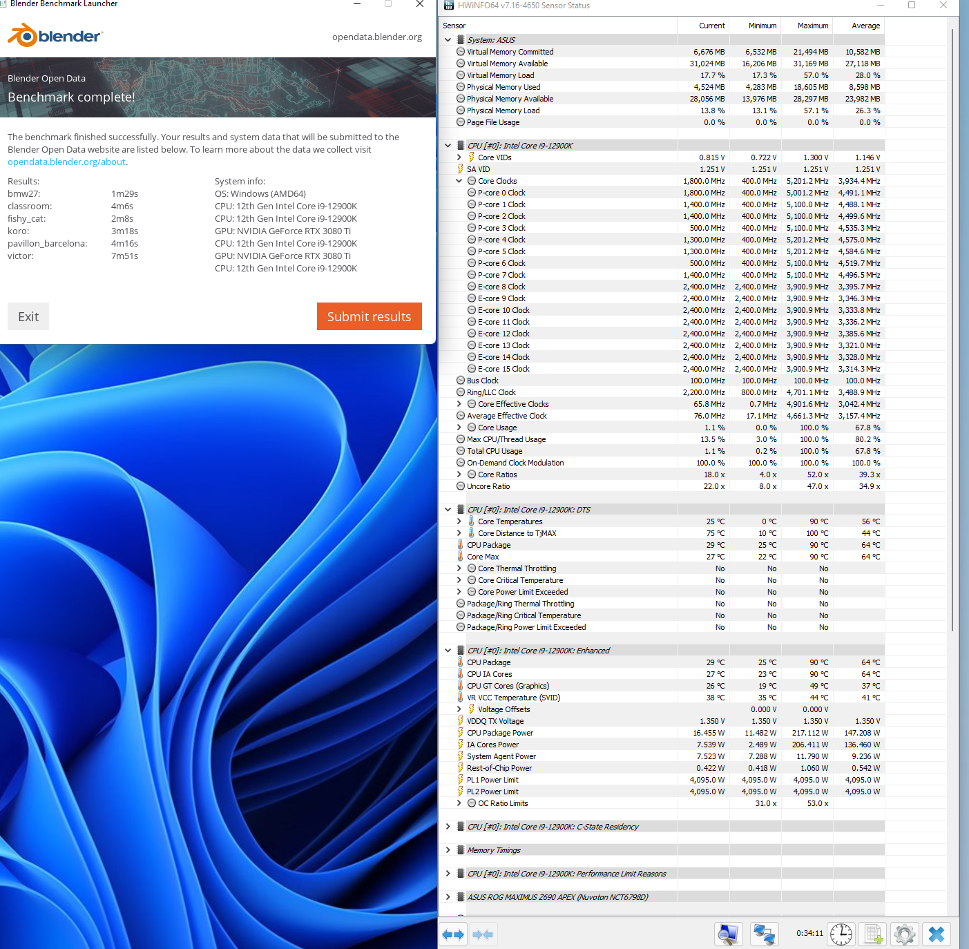 Если будет время, прогоните блендер бенчмарк...Очень интересно, как с ддр5 работает...Интересны результаты! Прежде, ес-но, подберите напряжение на процессор, иначе будет троттлинг и сброс частоты... https://opendata.blender.org/ тут скачивается...Желательно, при частоте проц-а 5000 или 5100...