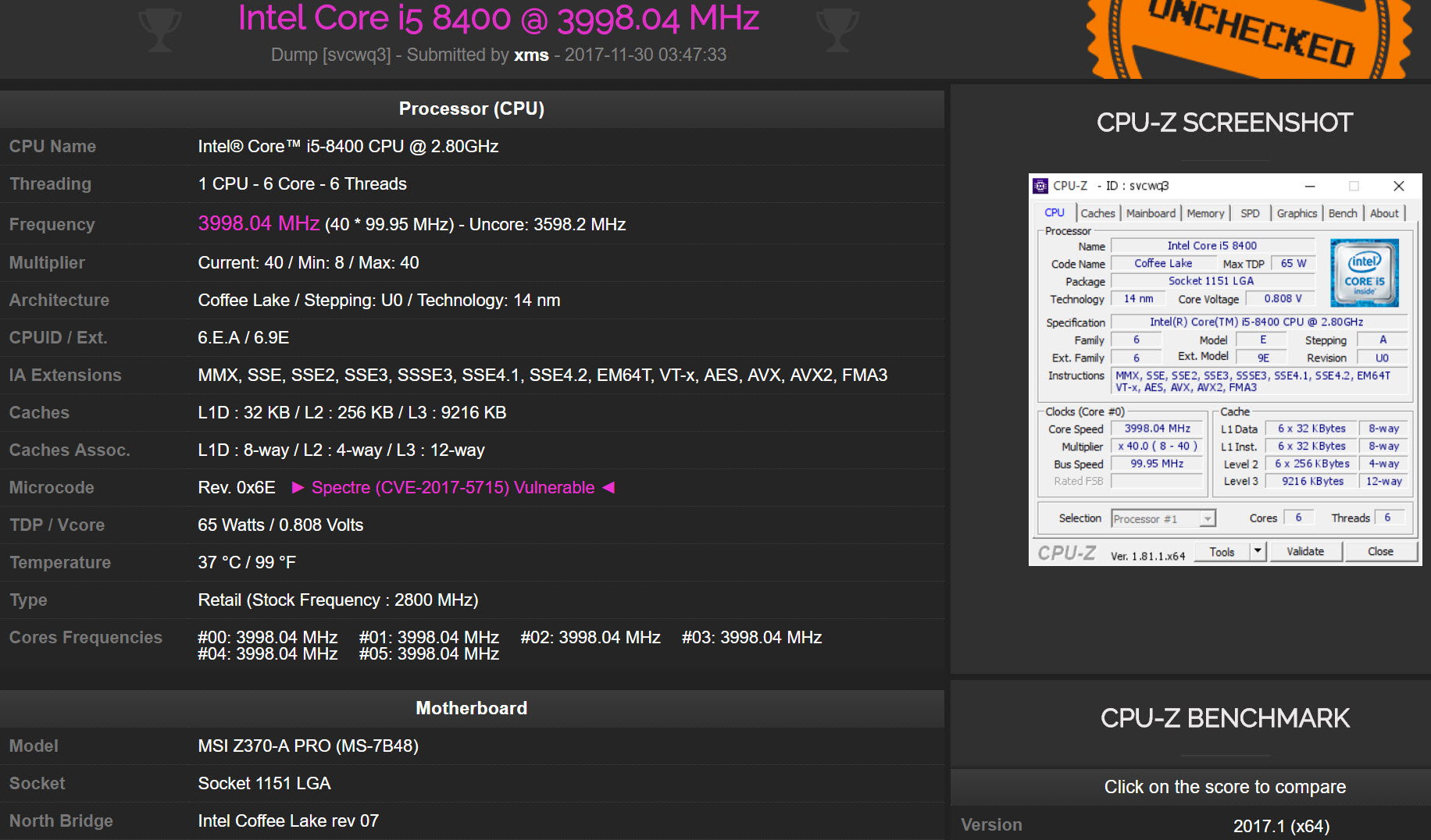 Меня все-таки гложет вот этот результат - https://valid.x86.fr/svcwq3 Как на связке i5-8400 и MSI Z370-A PRO получен максимальный множитель Turbo Boost по всем ядрам?