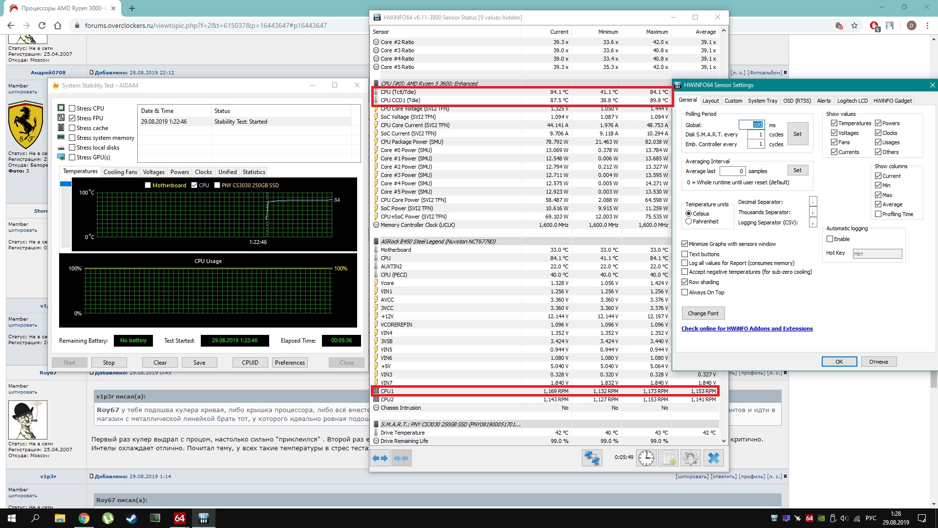 Я уже кидал тут свои скрины из аиды, вот еще раз прогнал в самом горячем режиме с новой версией hwinfo, которая показывает температуру кристалла CCD. Кулер Arctic Freezer 34 eSports DUO, на нем сейчас установлен один Pure Wings 2 на что-то около 1200 оборотов, комплектные вентили я снял. А какие температуры в играх? У меня в текущем режиме 58-68 градусов, большую часть времени около 60, редкие скачки до 68.