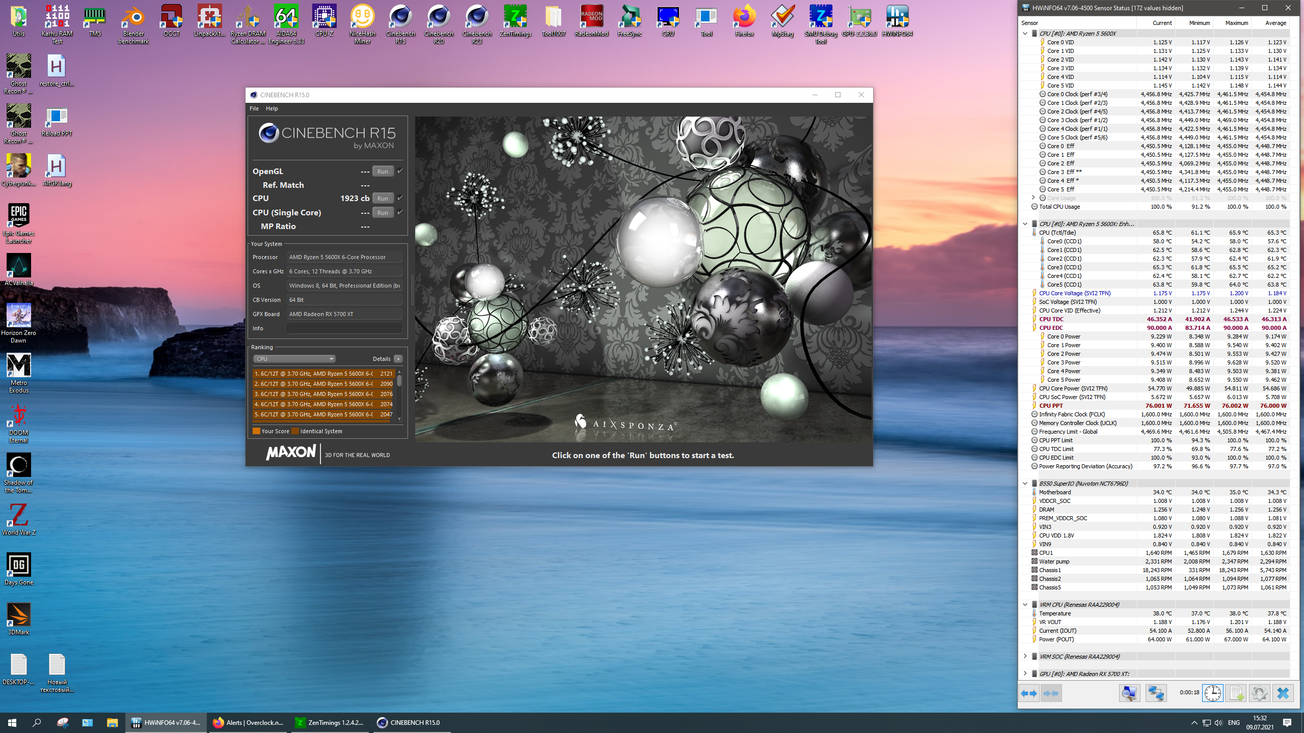 Доброго времени суток товарищи! Перешел на 5600x, и столкнулся с некоторыми рода трудностями так сказать. Во первых это температуры работы процессора в простое AIDA показывает 47 градусов, с учетом охлаждения dark rock pro 4 + термухой новой. В стресс тесте AIDA температура максиму +-60 градусов, в играх и то меньше (тарков, пое(эта вообще не греет его), бф, колды и прочее. Как так ? И Cinebench r15 набирает всего ~1650 баллов, когда у людей он бьет под 2к. Непонятно. Скрин приложен, тест cinebench, температуры и прочее. Мать MSI x470 gaming plus, биос 7B79vAK3(Beta version). Перед установкой процессора был сделан холодный сброс, в биосе шевелил лишь память, поднял до 3800 cl16 ( можно меньше, но лень пока, и так все работает). Сам скрын https://ibb.co/9p6tV3y. Помогите позязя ): ЗЫ: забыл добавить, Cinebench при тесте цп не грузит ядро по полной, 4300 вроде потолок, и все.