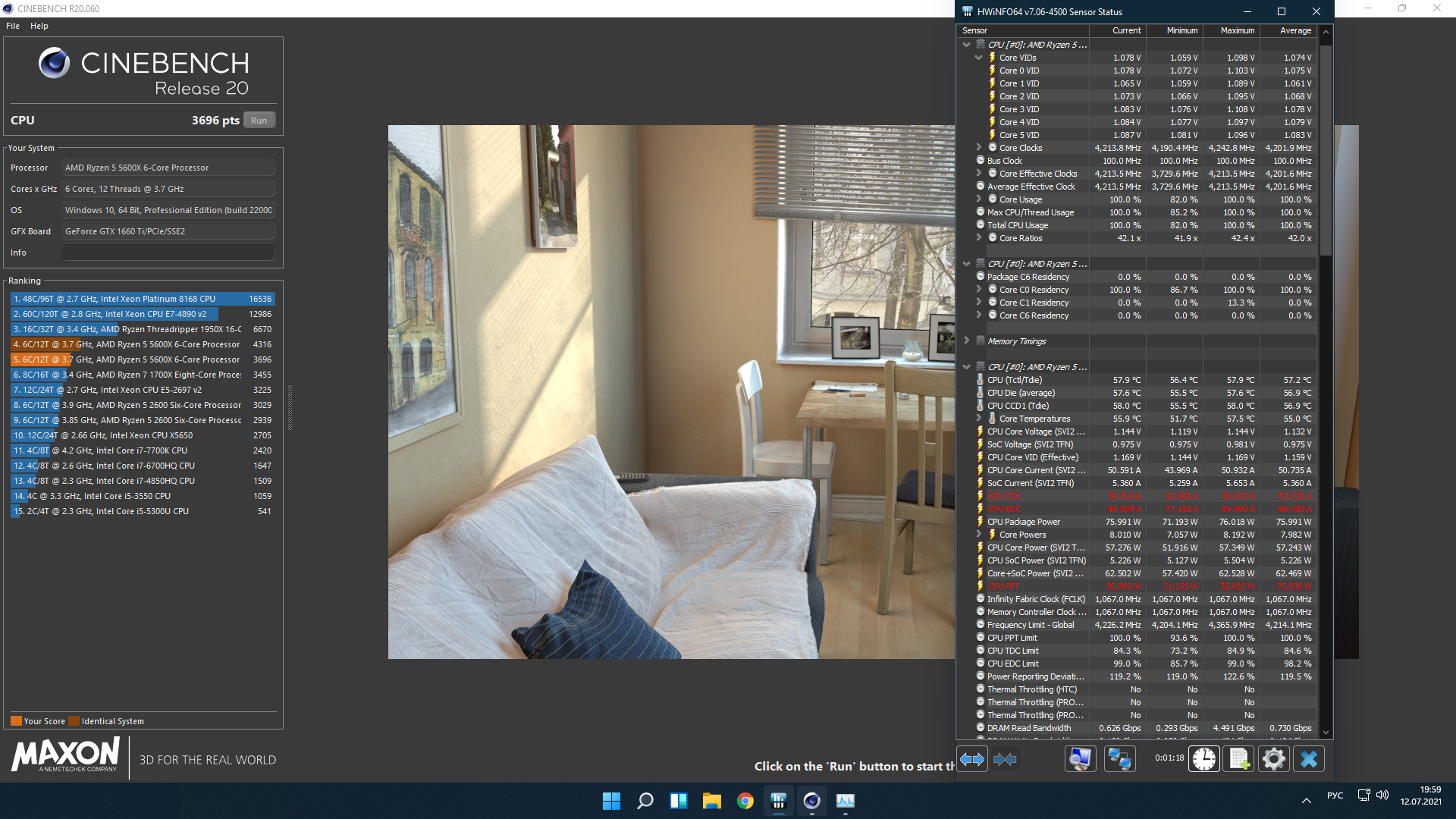Pavel1411 Такое ощущение, будто у вас 3600х вместо 5600х 1. Какая текущая версия биоса ? 2. Попробуйте удалить Ryzen Master, обновить биос (если последний, то прошить заново, из дефолтных настроек), затем повторить тест с CBR20. 3. В сенсорах HWInfo64 нужно раскрыть вкладки Core clocks, core effective clocks, core temps. C0-c6 хрень вообще уберите.