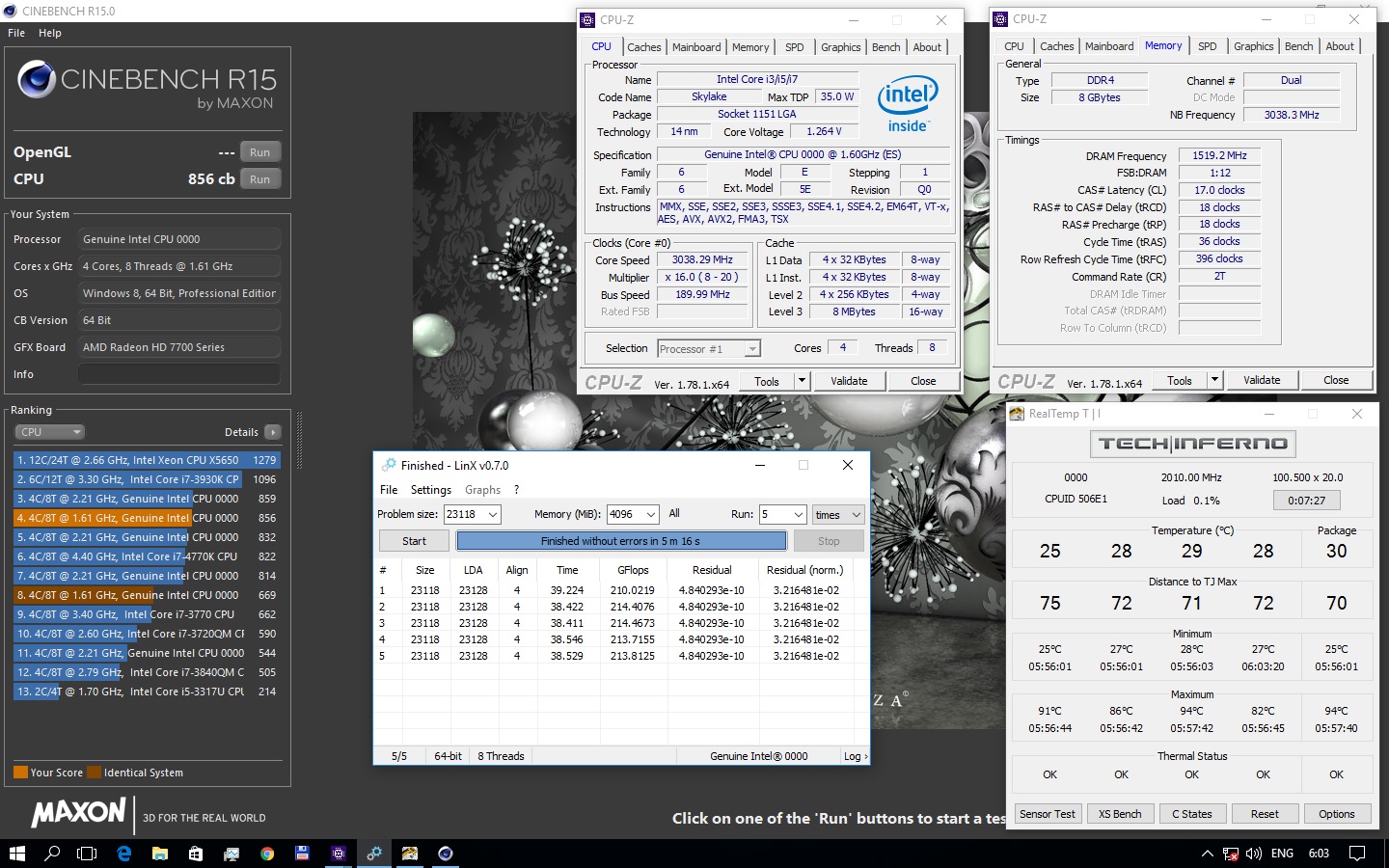 При 1.2 вольт запускается на 190, но здесь уже ограничителем служит "Zalman CNPS90F", при любом телодвижении температура стремится уйти в запредельную. Материнка ASUS Z170-K.