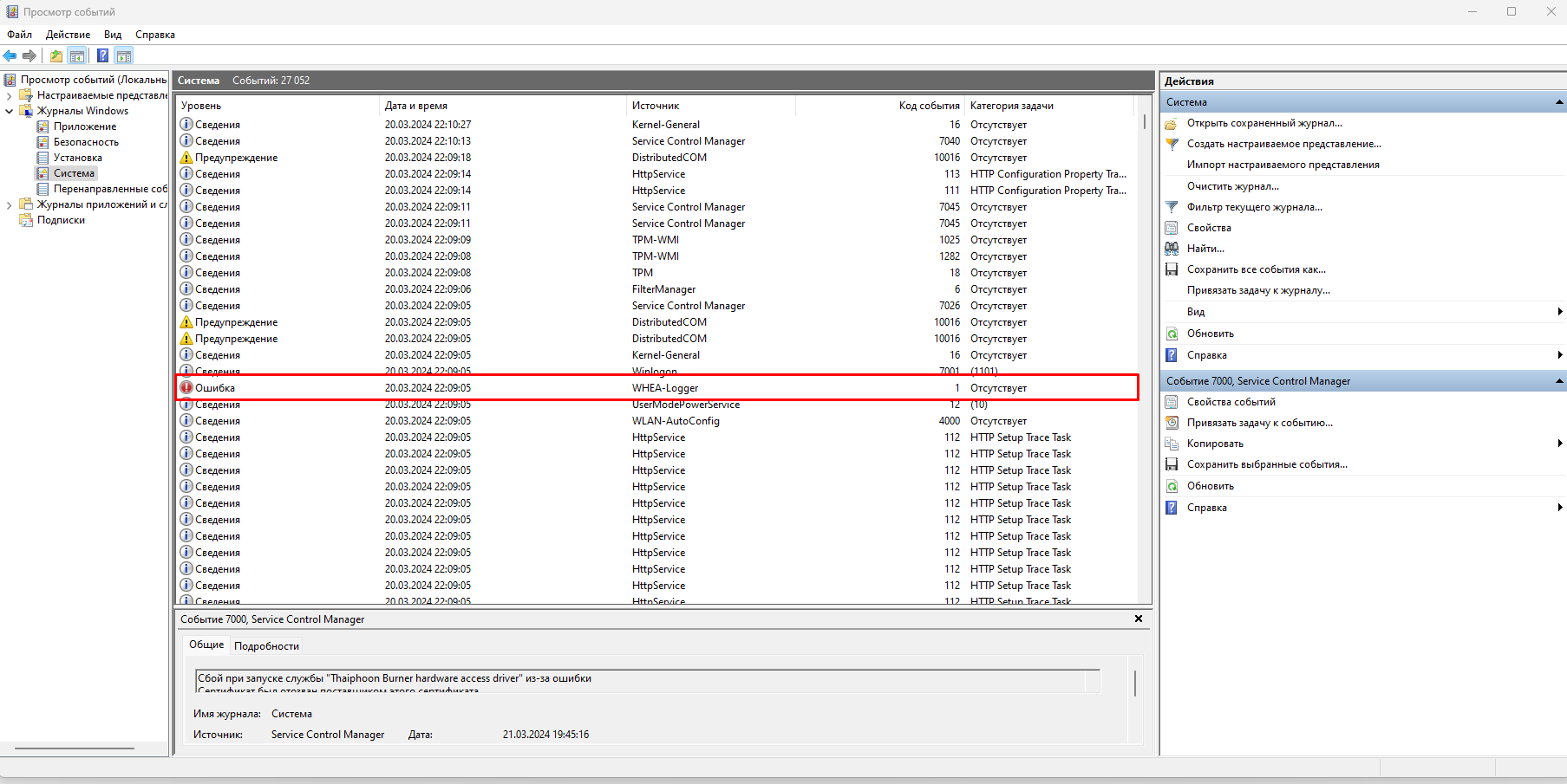 Там же написано, что ошибка Тайфун. Удалите его и его драйвер. Или удалите ошмётки его драйвера если остались. Только это не похоже на WHEA. Вы зачем такие скриншоты делаете?