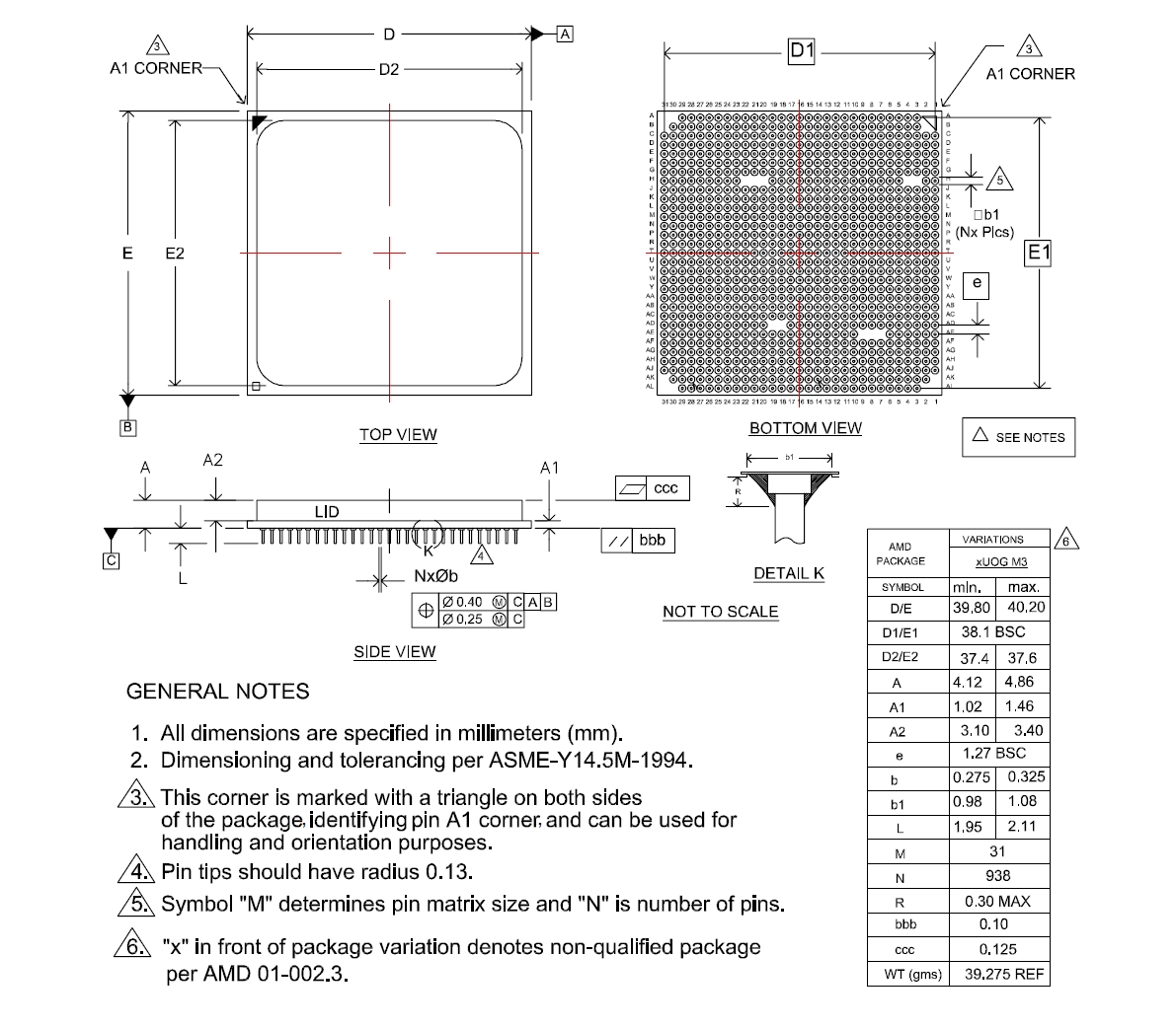 Figure 2 and Figure 3, on page 12, provides dimensional information for the 938-pin and 941-pin organic µPGA package that mates with the Socket AM3b.