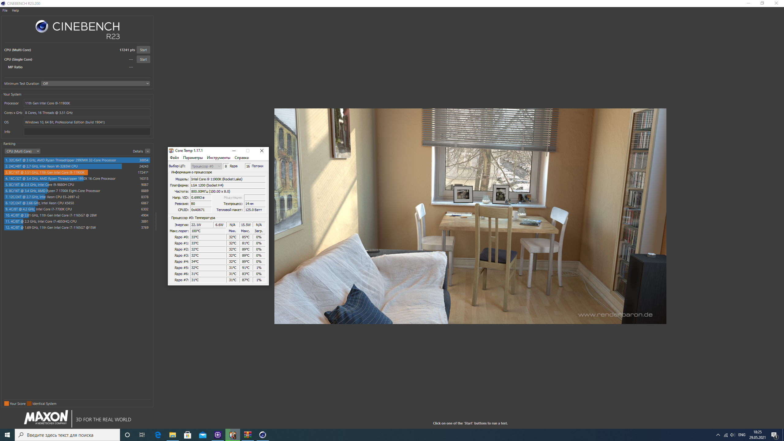 Cinebench R23 2 ядра на 5.4 и 6 ядер 5.3 при 1.376В на древней винде, которая еще 2011 сокет пережила.