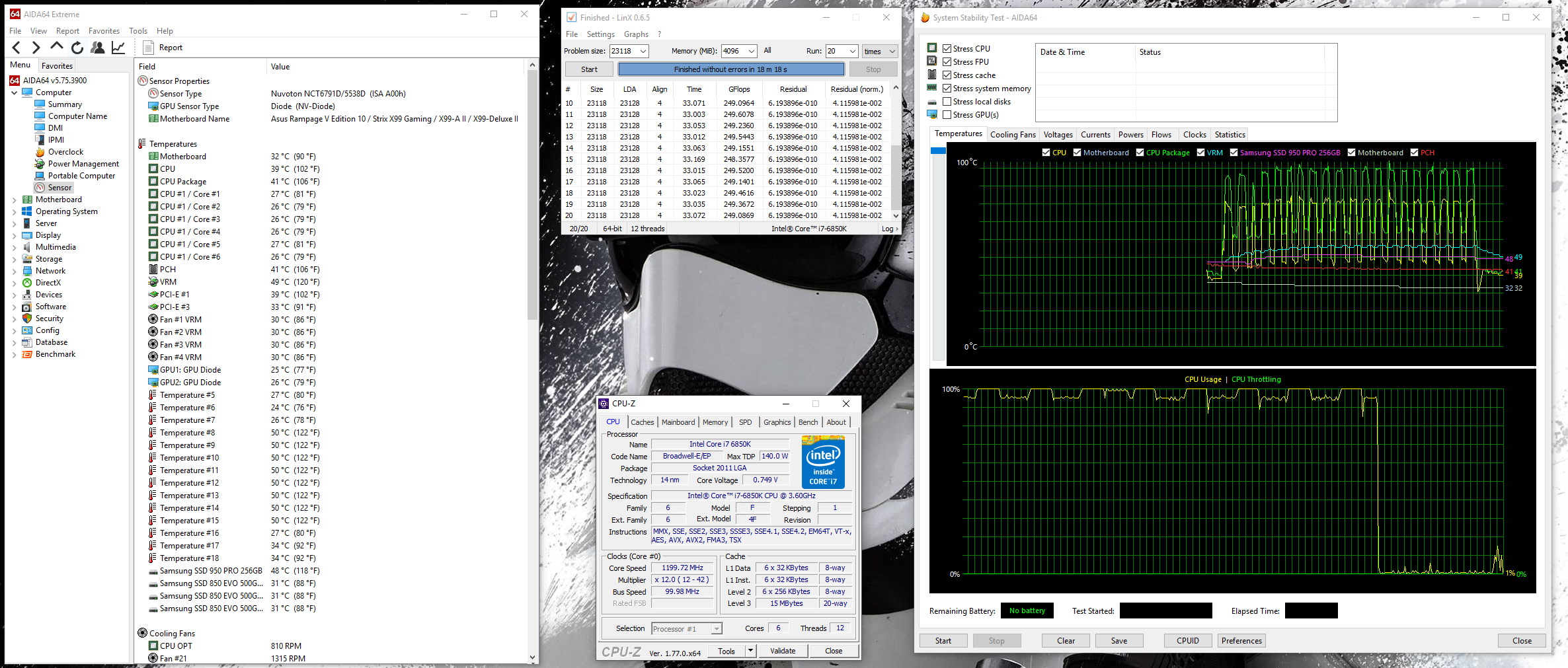 i7 6850k (4.2 1.23v) + 32gb DDR4 3000 CL15 + Asus X99 Deluxe II